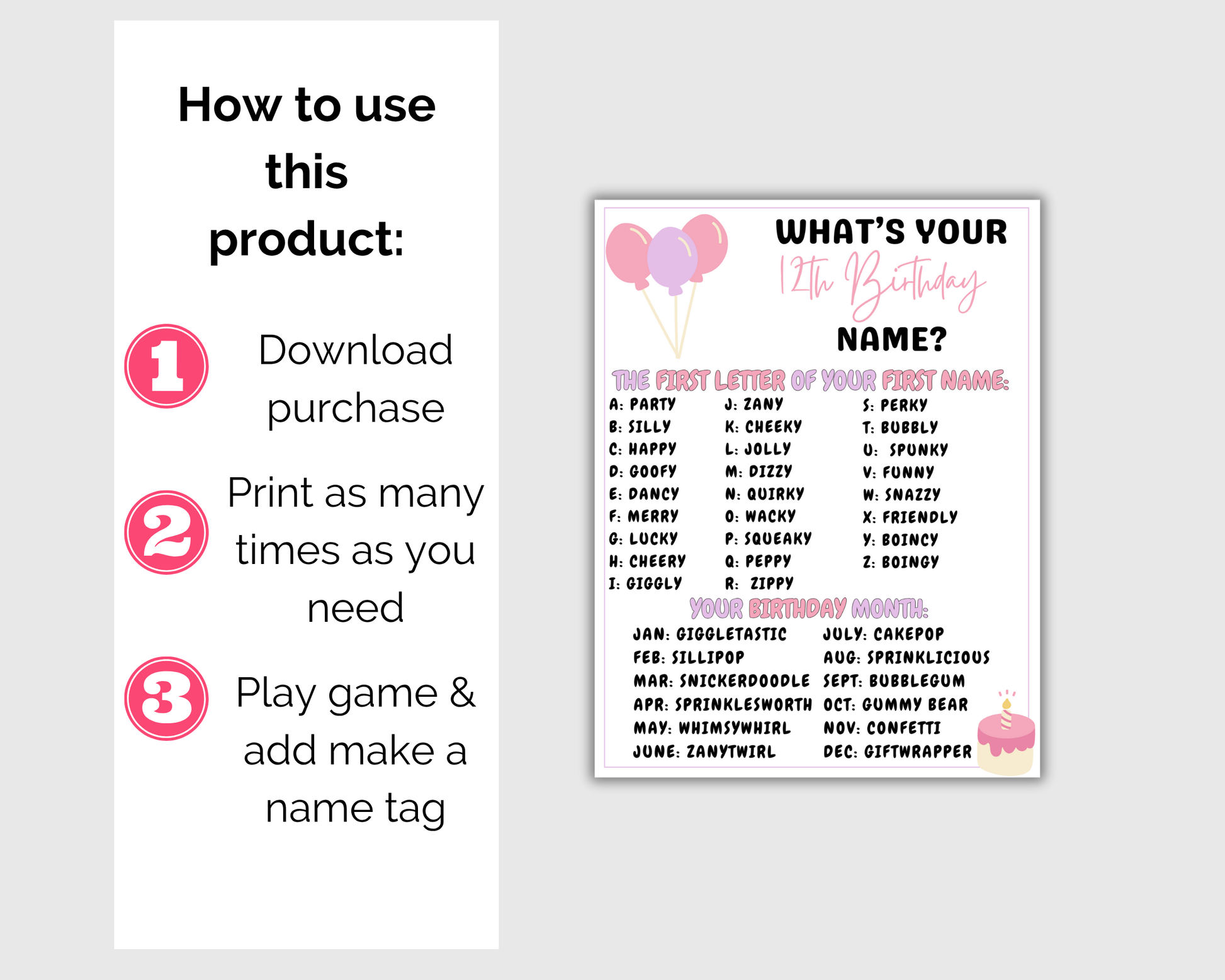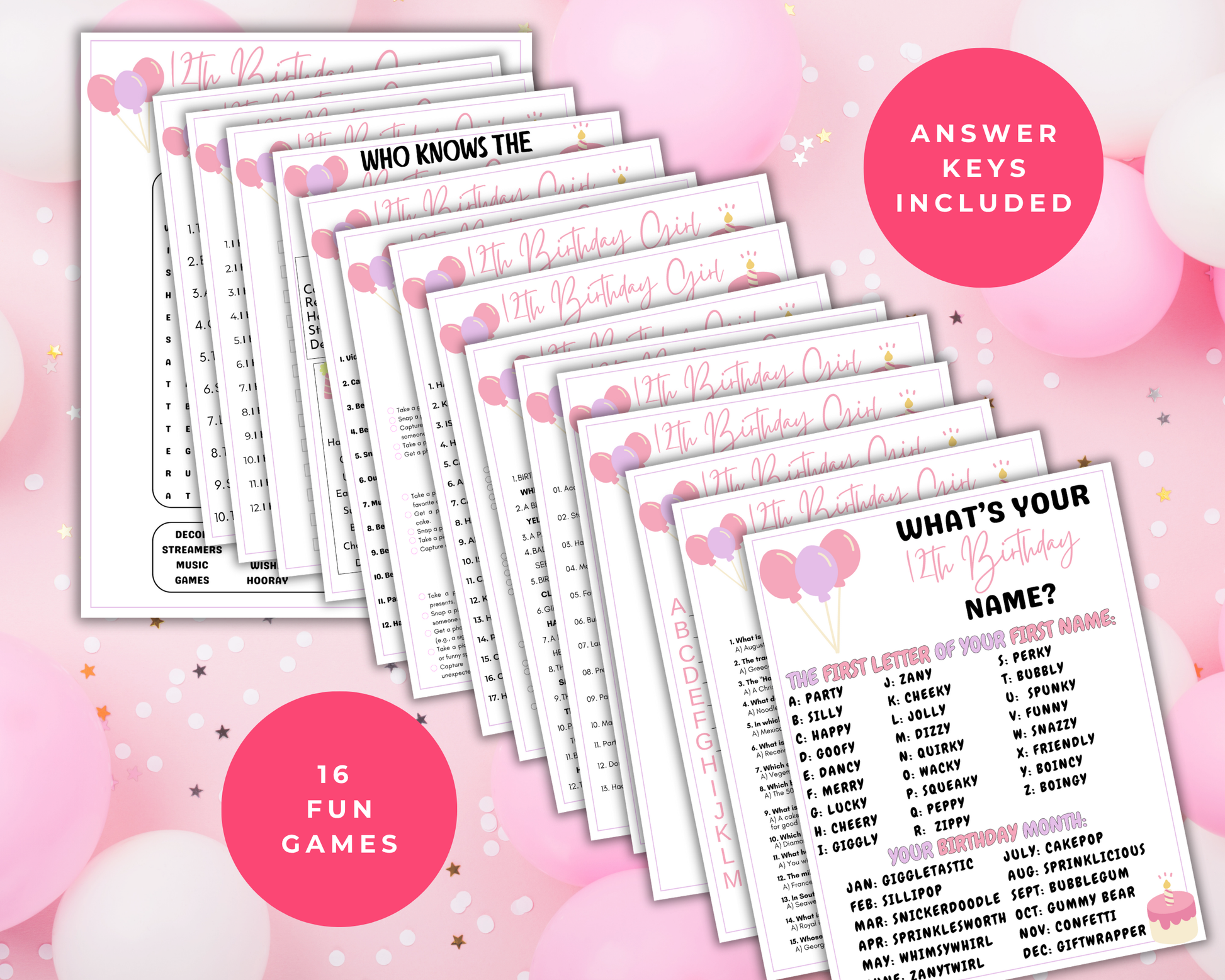 This fun 12th Birthday Party Game bundle is a great birthday themed activity to play at birthday parties and more. It comes with 16 games. Simply print the games as many times as you like and start playing.