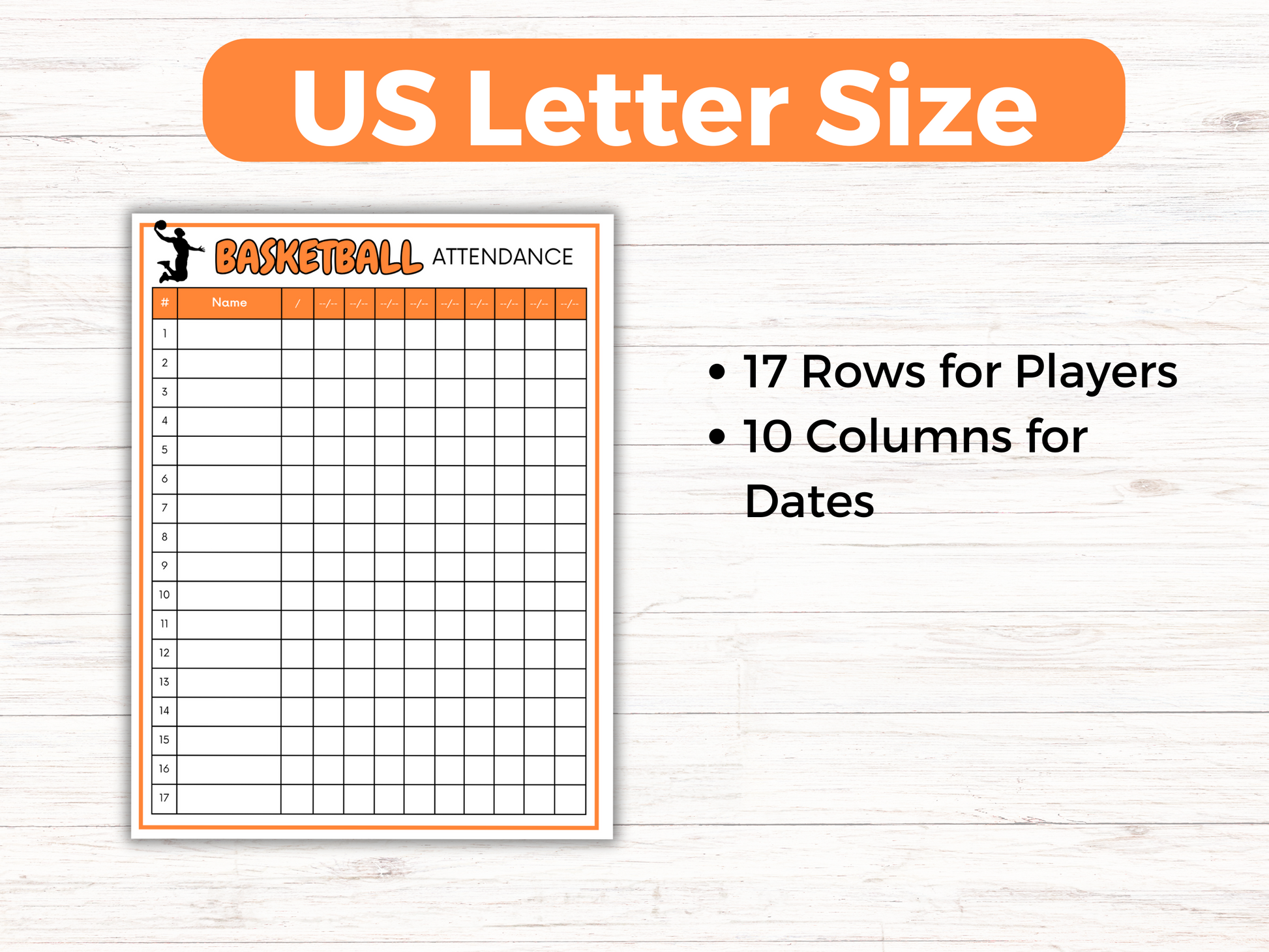 Basketball Attendance Sheet - Print on 8.5 x 11 paper