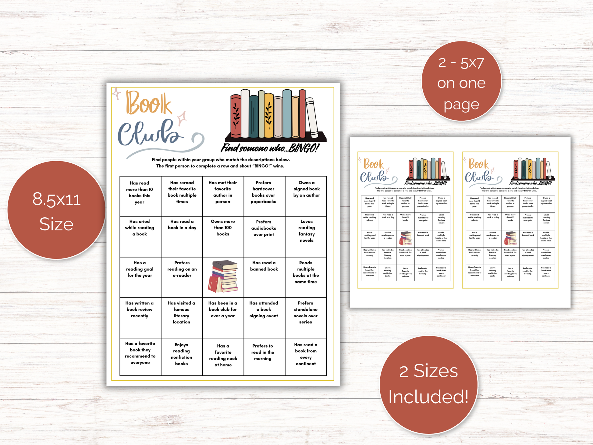 Book Club Find Someone Who 5x7 - Print 2 games on one 8.5 x 11 sheet of paper