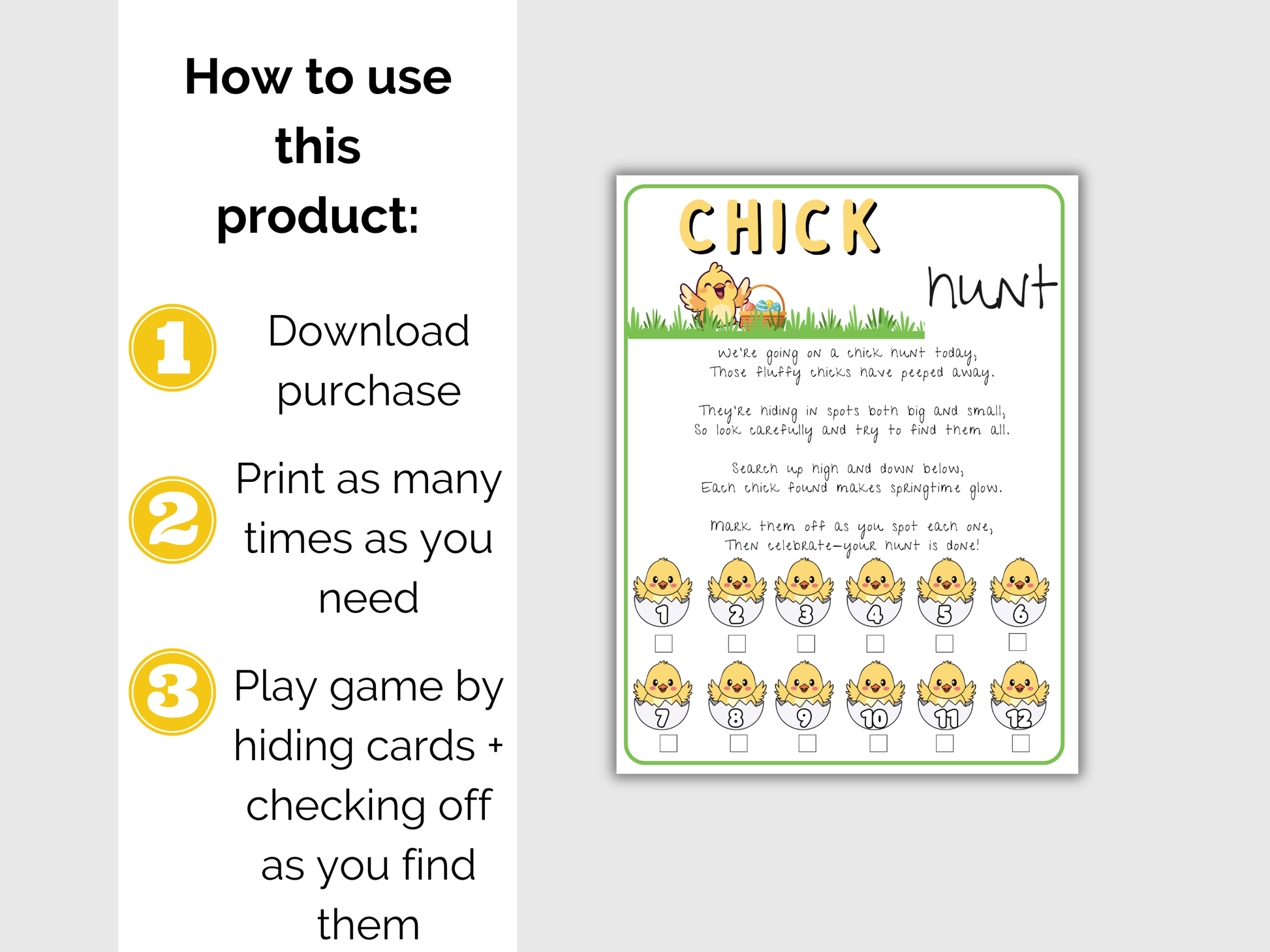 Easter Chick Scavenger Hunt 5x7 - Print 2 games on one 8.5 x 11 sheet of paper