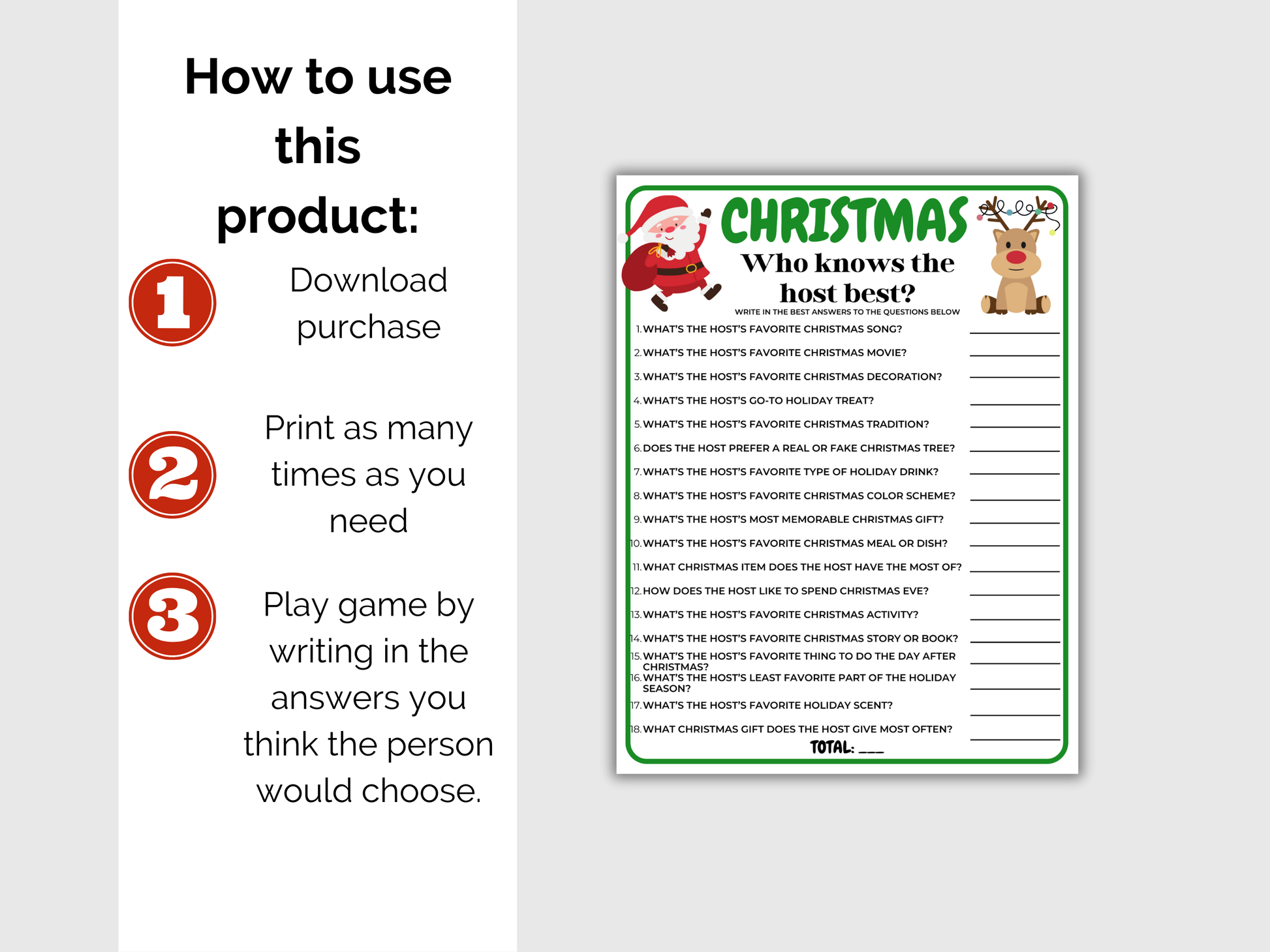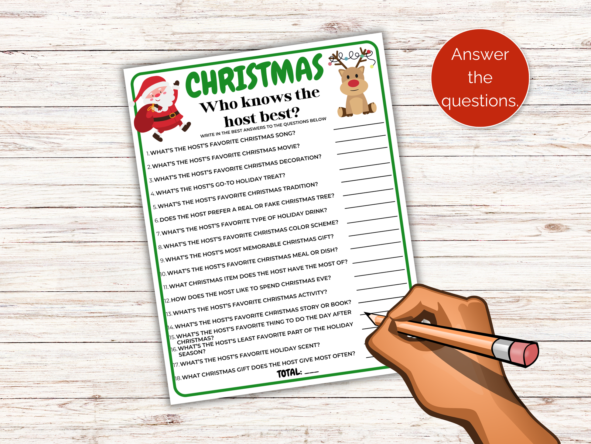 Christmas Who Knows The Host Best Game - Print on 8.5 x 11 paper