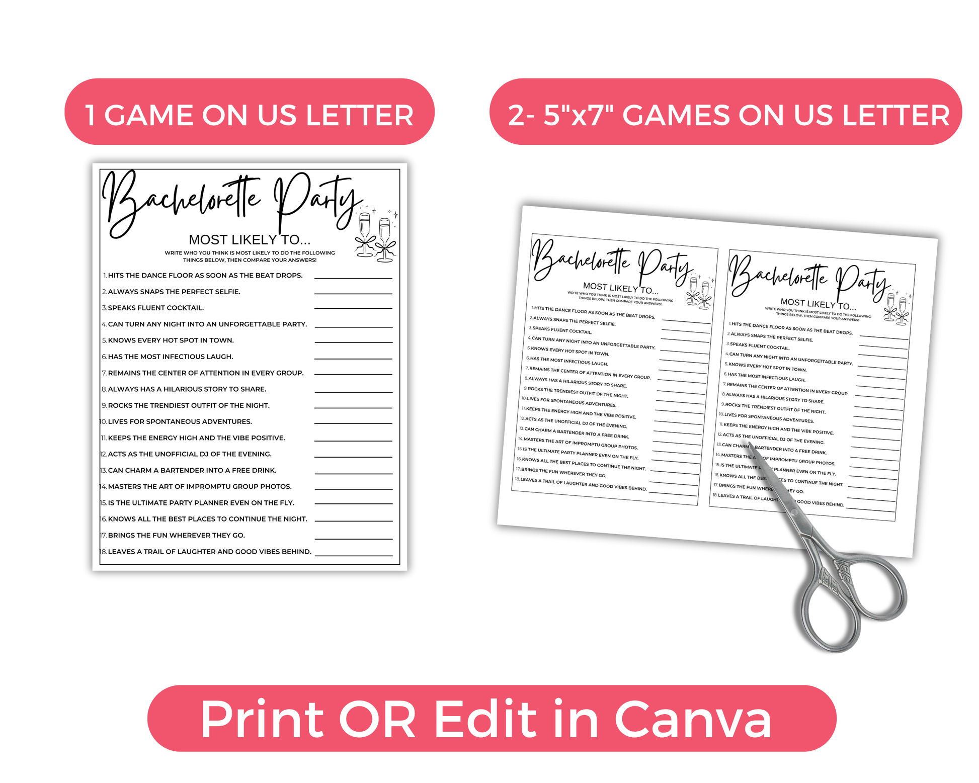 ➤ Clean Bachelorette Games - Print 2 5x7 on 8.5x11 Paper