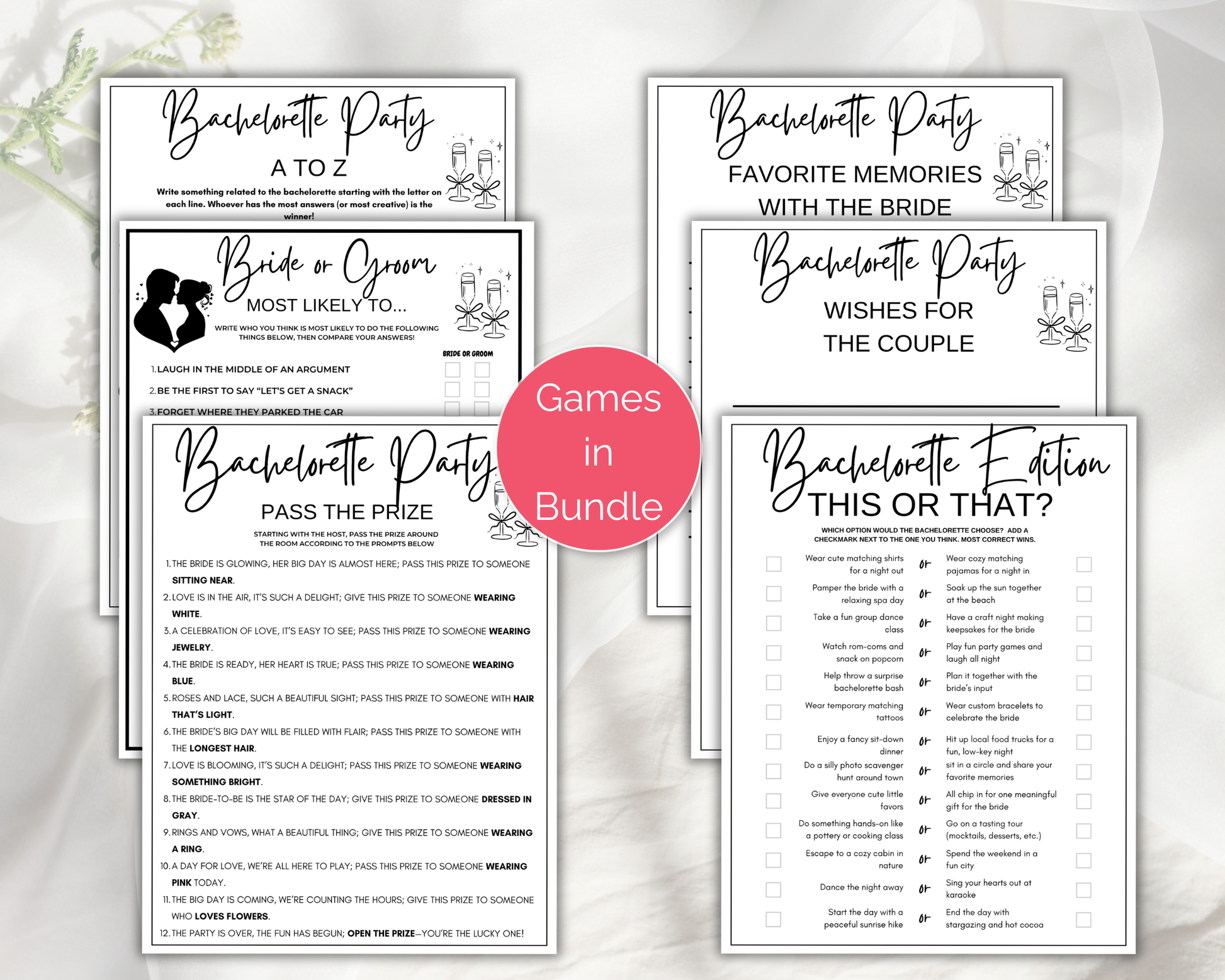 ➤ Clean Bachelorette Games - Print on 8.5x11 Paper
