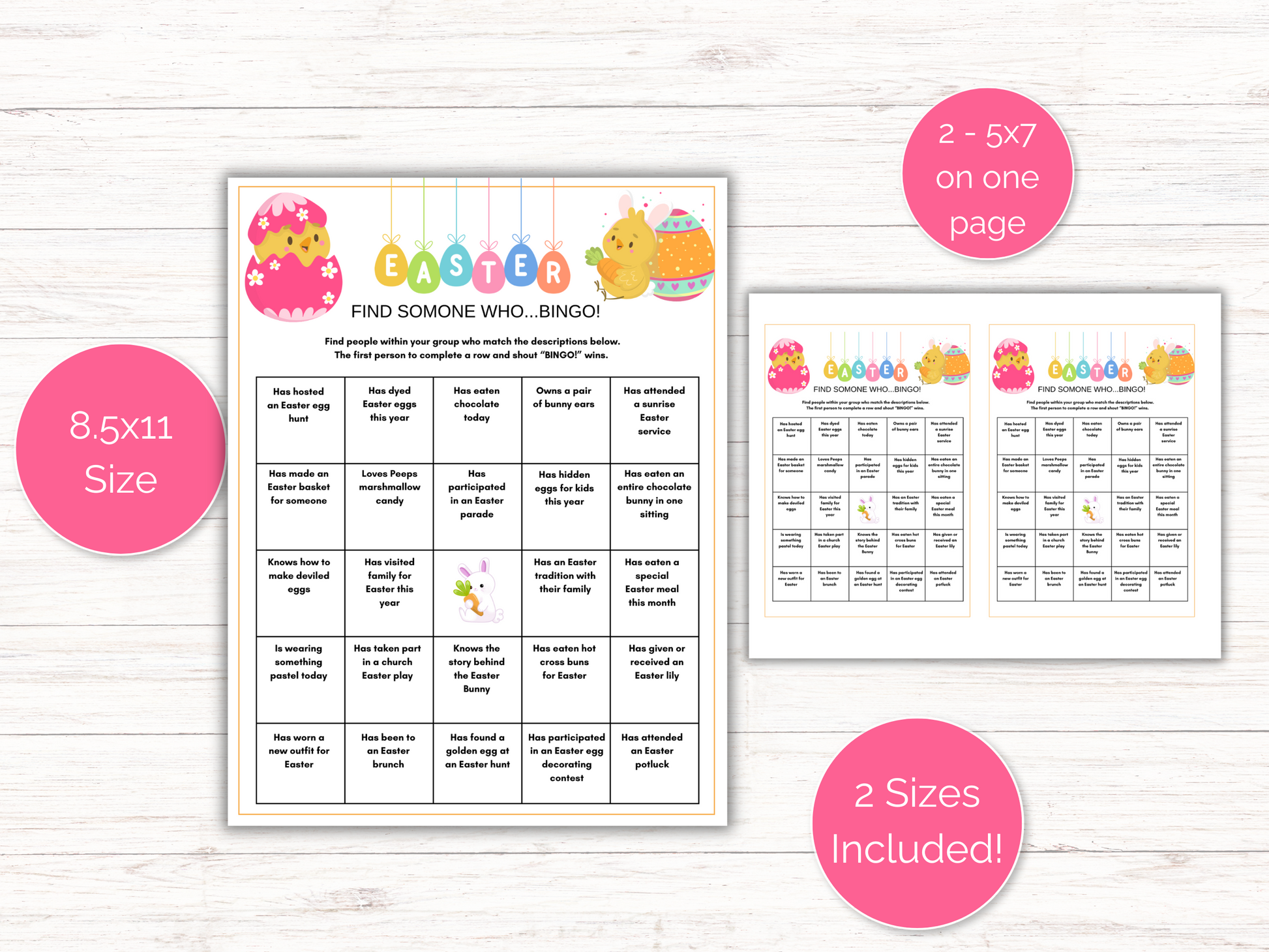 Easter Find Someone Who 5x7 - Print 2 games on one 8.5 x 11 sheet of paper