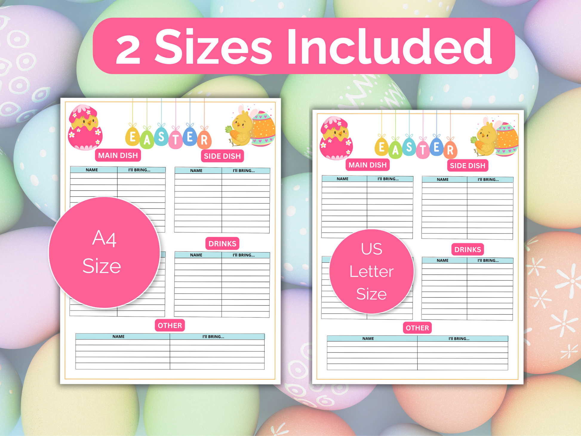 Easter Party Potluck Sign Up with 3 different designs - Print on A4 size paper