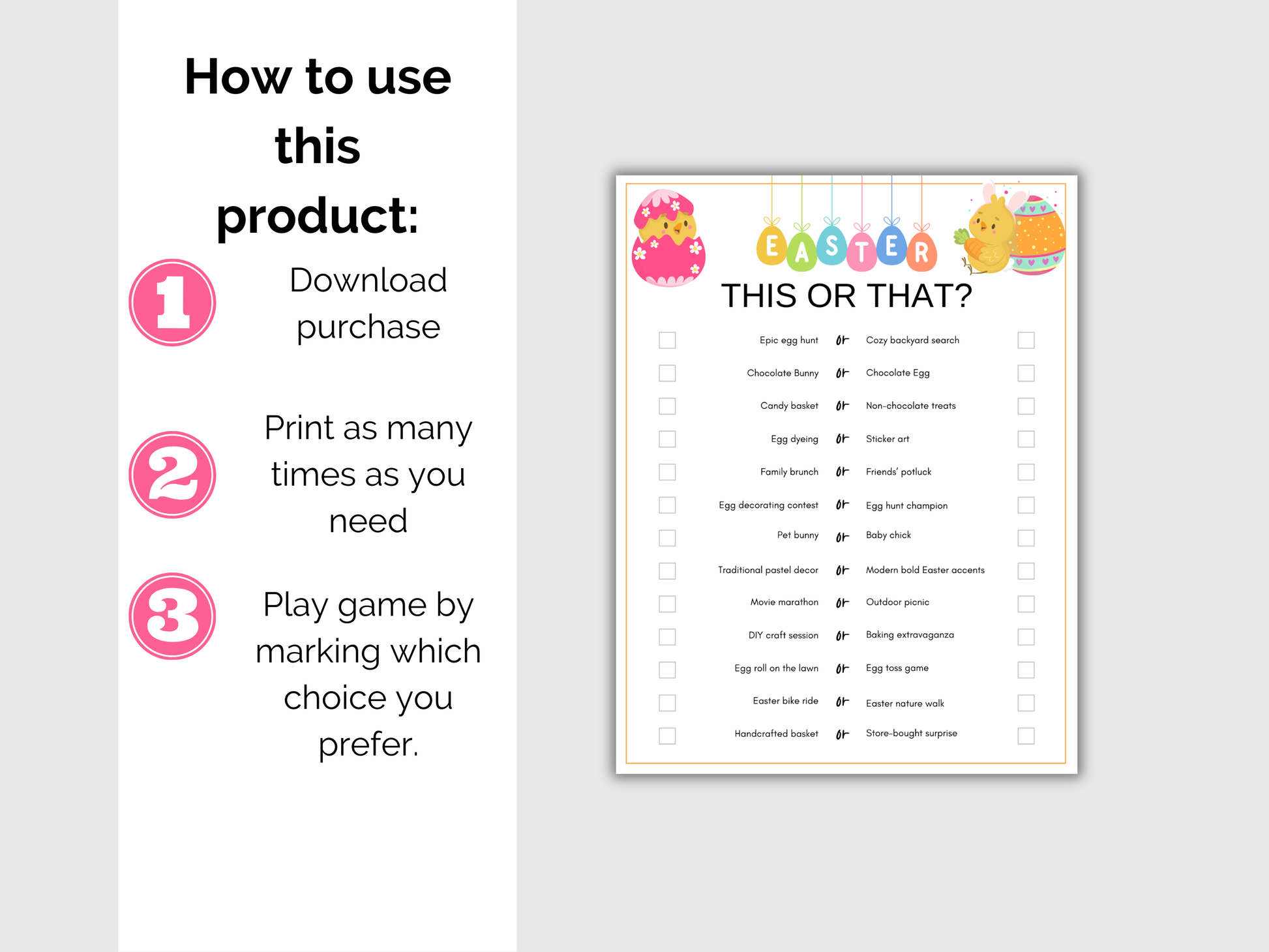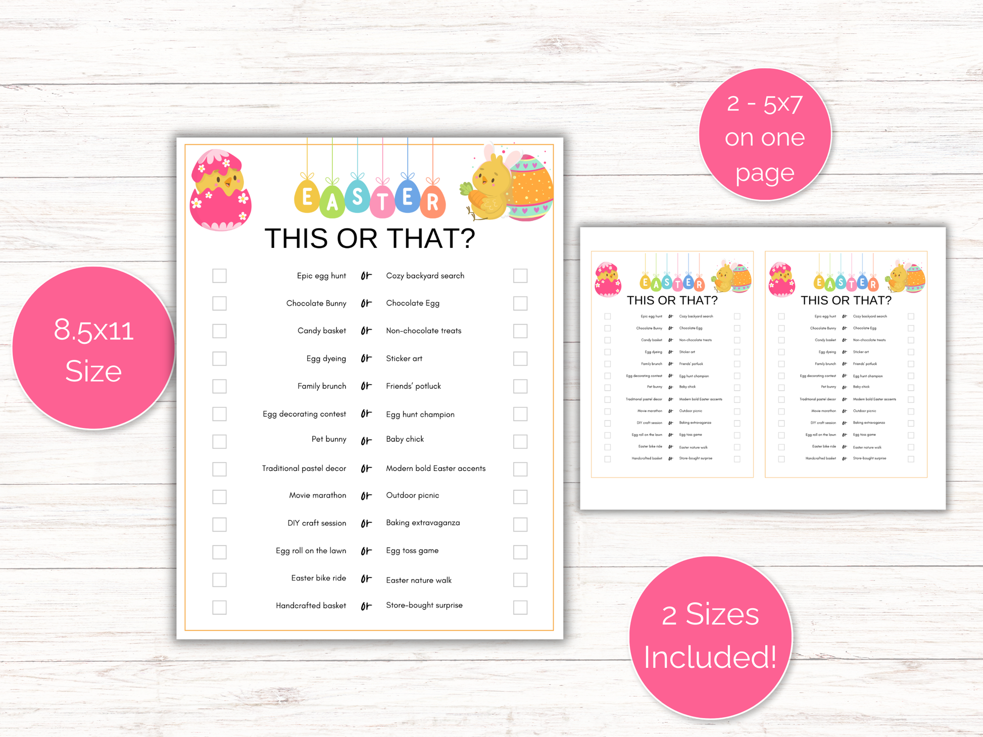 Easter This or That Game 5x7 - Print 2 games on one 8.5 x 11 sheet of paper