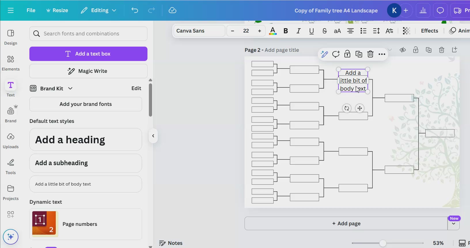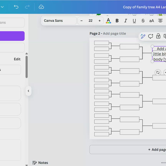 The Family Tree Chart can be printed, filled in by hand and used right away, you can fill it in digitally or you can easily edit in Canva. Everything on it is editable - text, colors, graphics and more.
