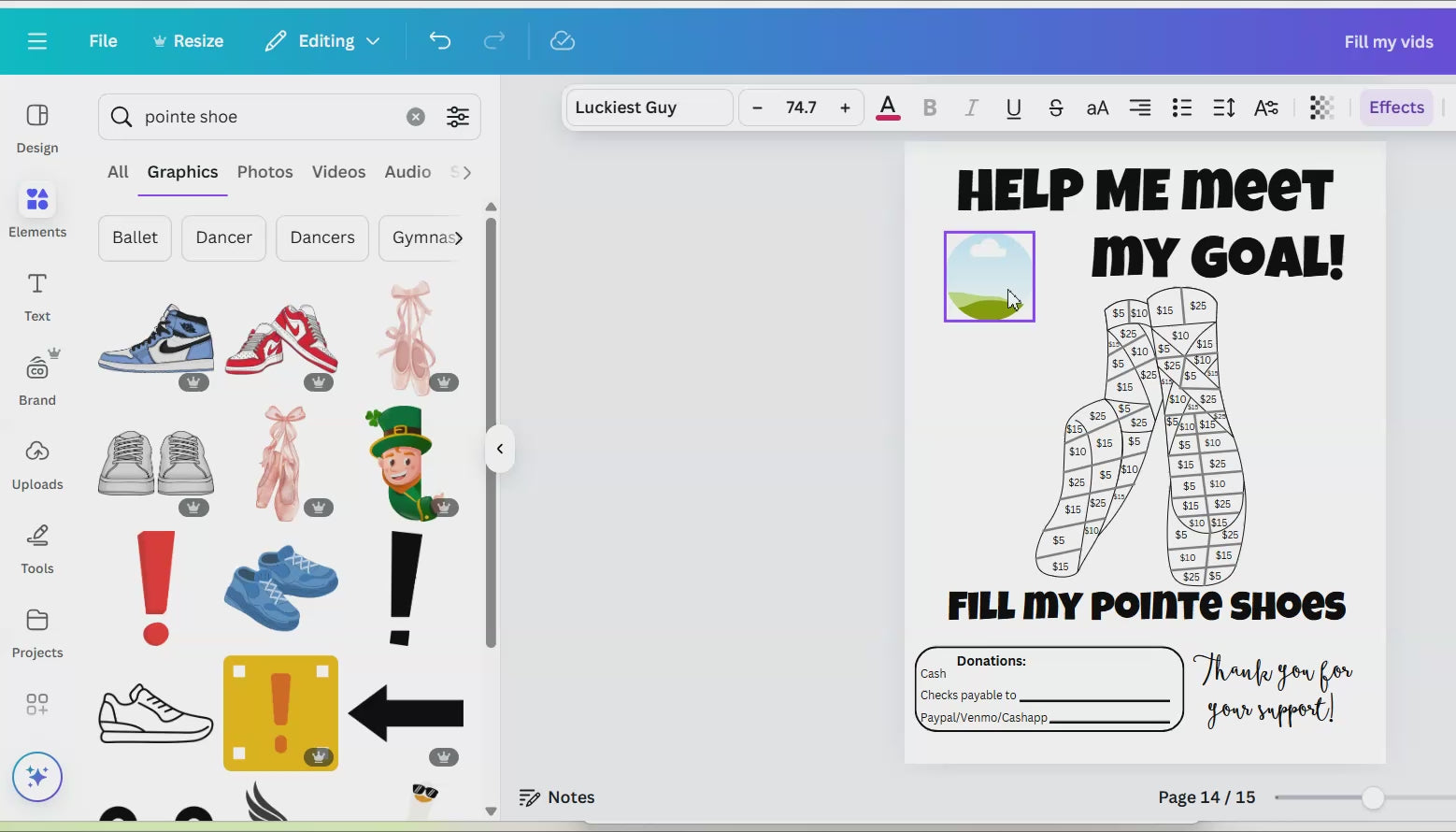 Fill My Pointe Shoes - Editable in Canva template link