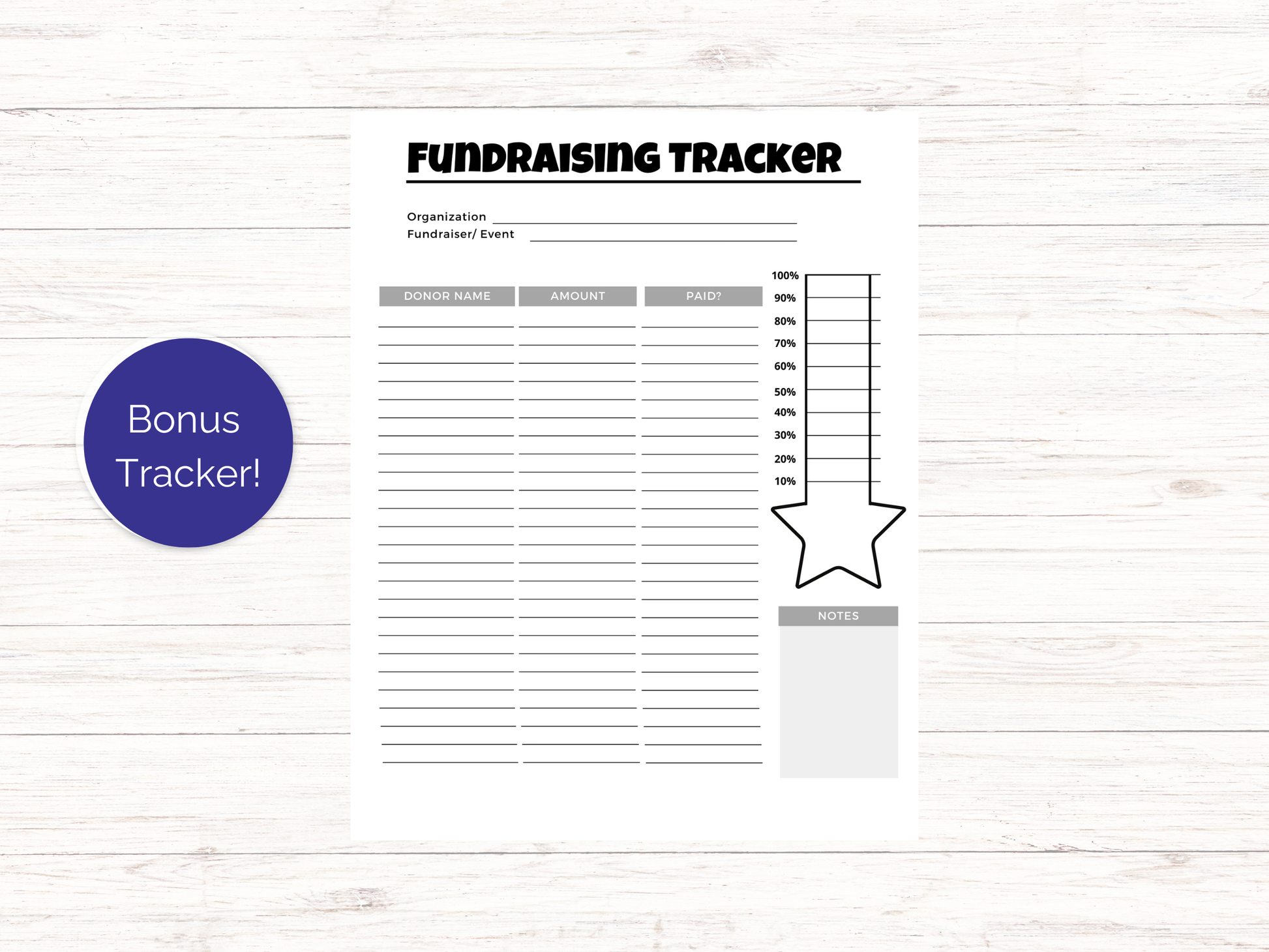 Fundraiser Tracking Sheet - Print on 8.5x11 Paper