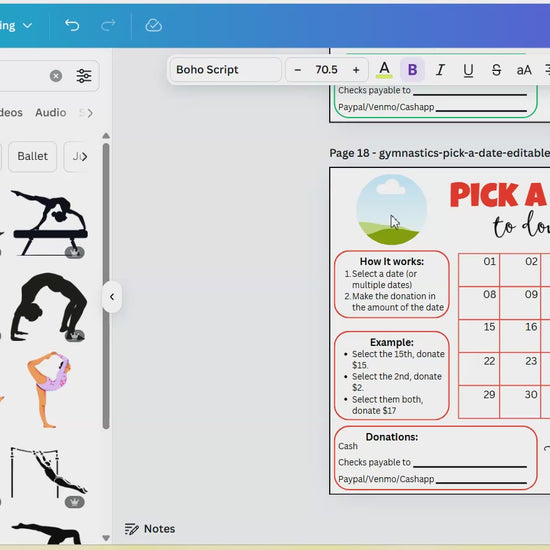 Gymnastics Pick A Date To Donate - Editable in Canva template link