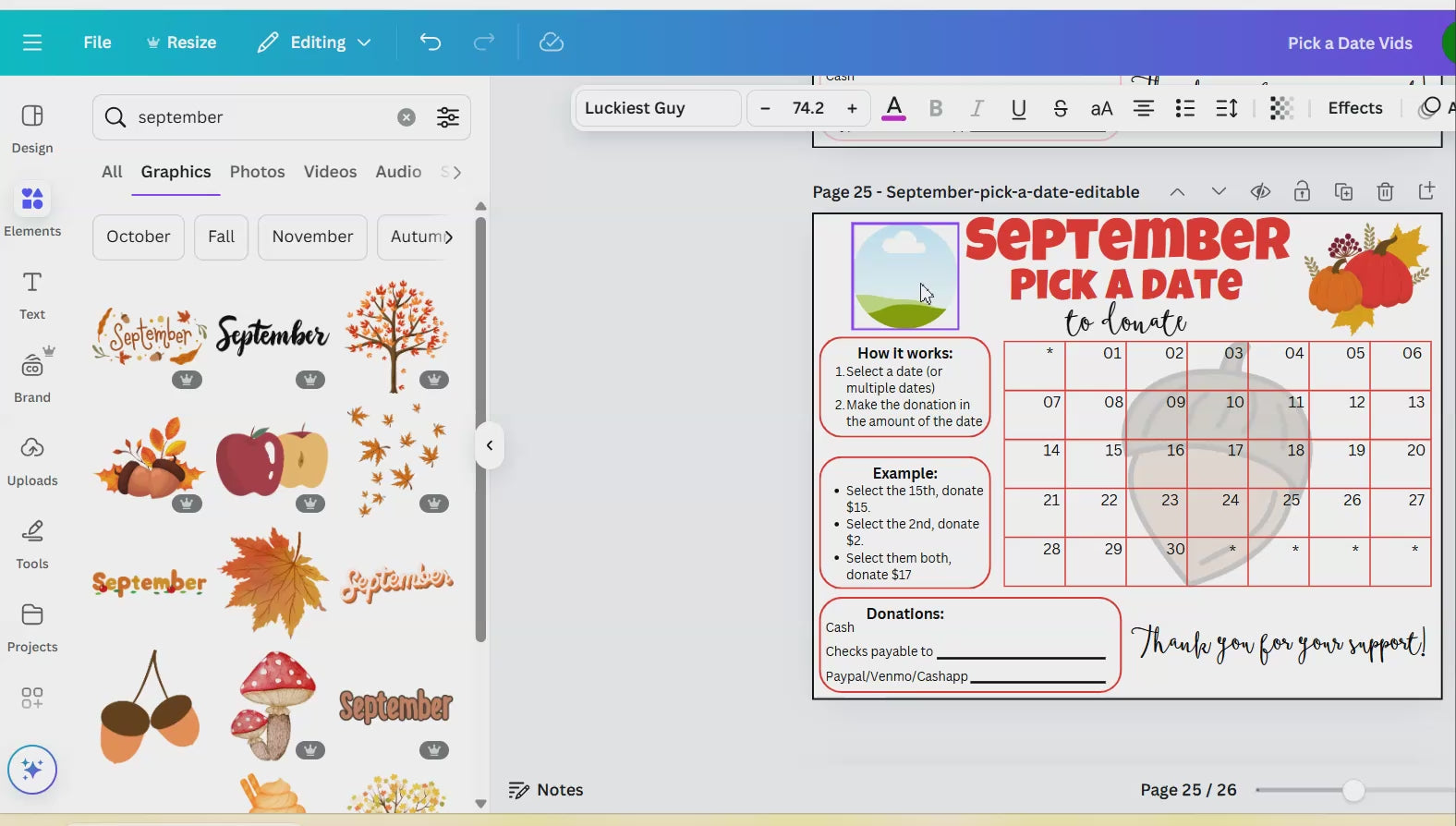 September Pick A Date To Donate - Editable in Canva template link