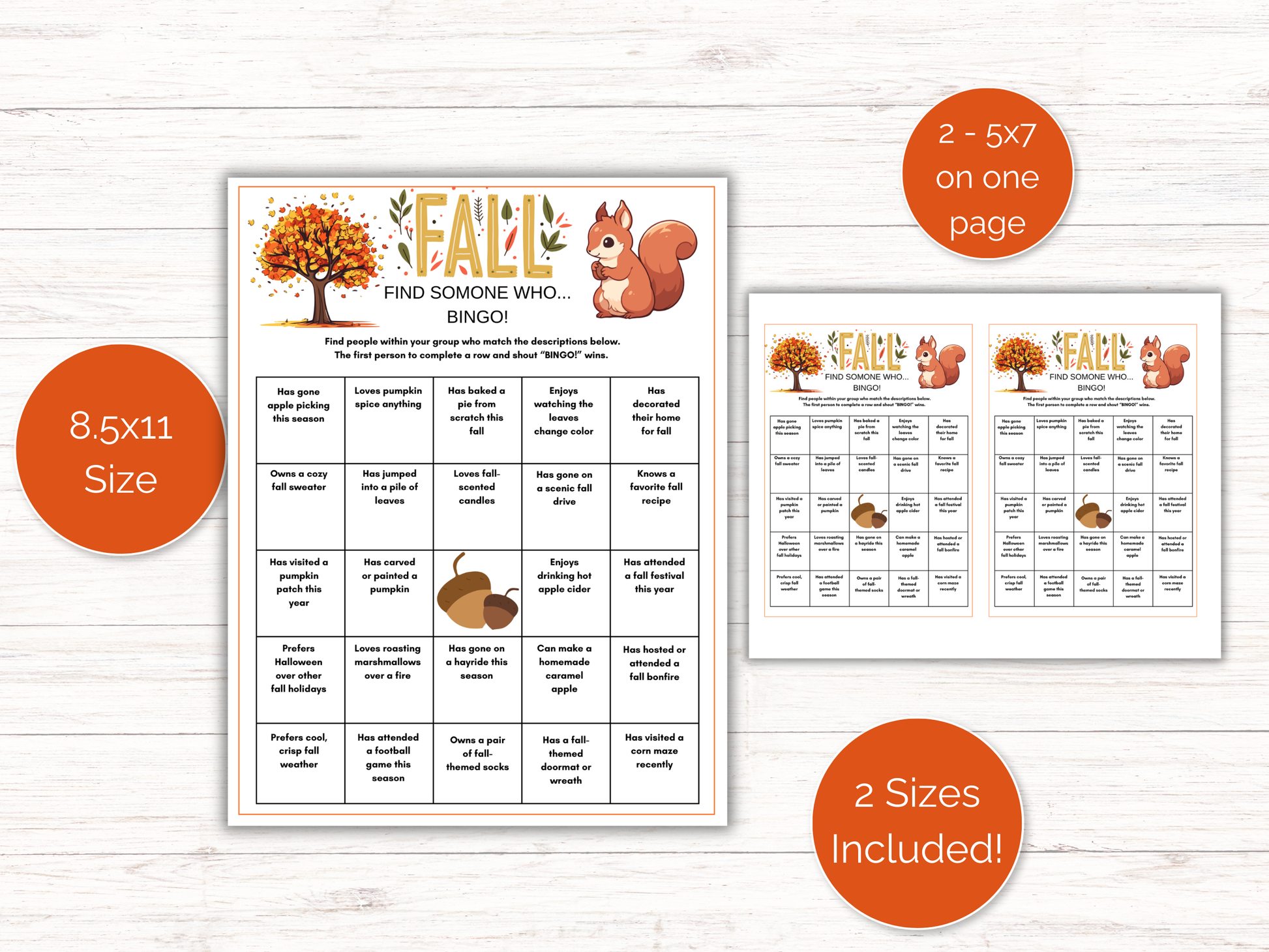 Fall Find Someone Who 5x7 - Print 2 games on one 8.5 x 11 sheet of paper