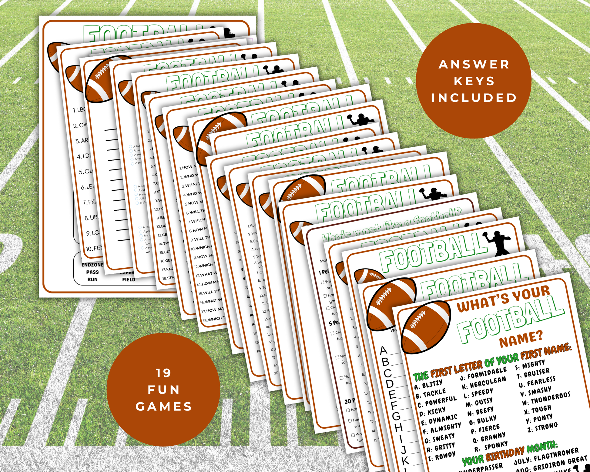 19 Football Games + answer keys - 1 per 8.5x11 inch piece of paper