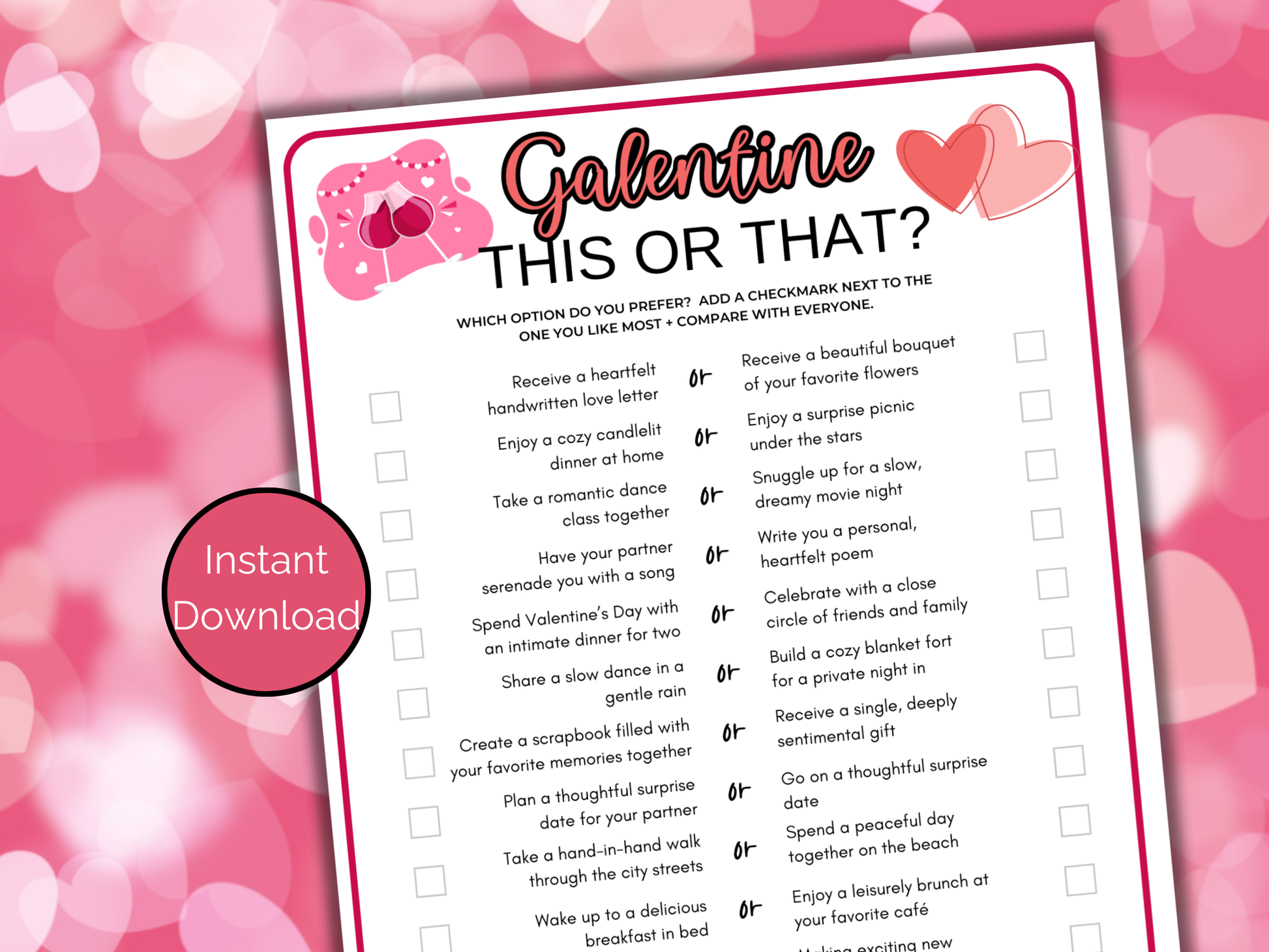 Galentines This or That Game - Print 2 games on one 8.5 x 11 sheet of paper