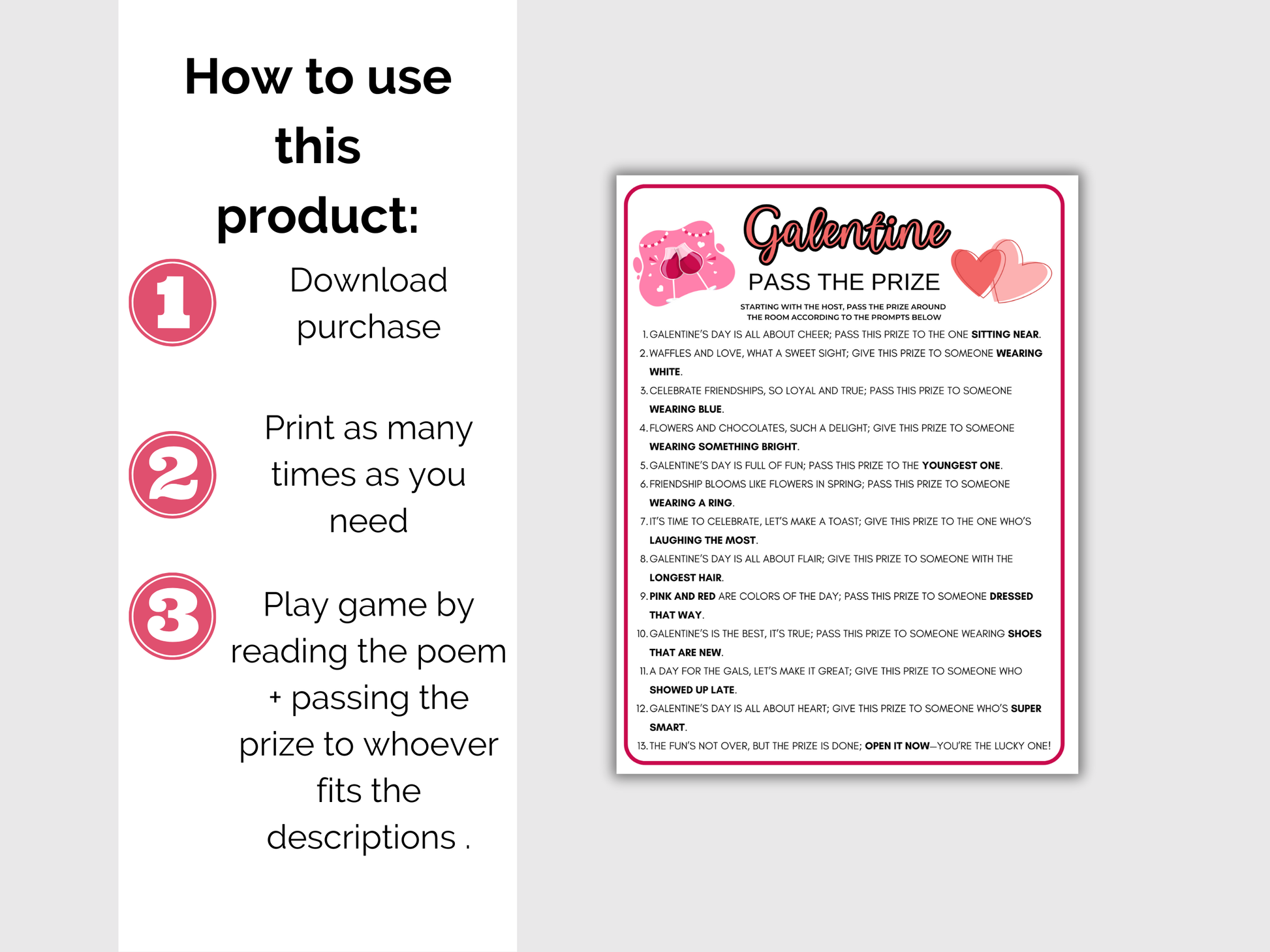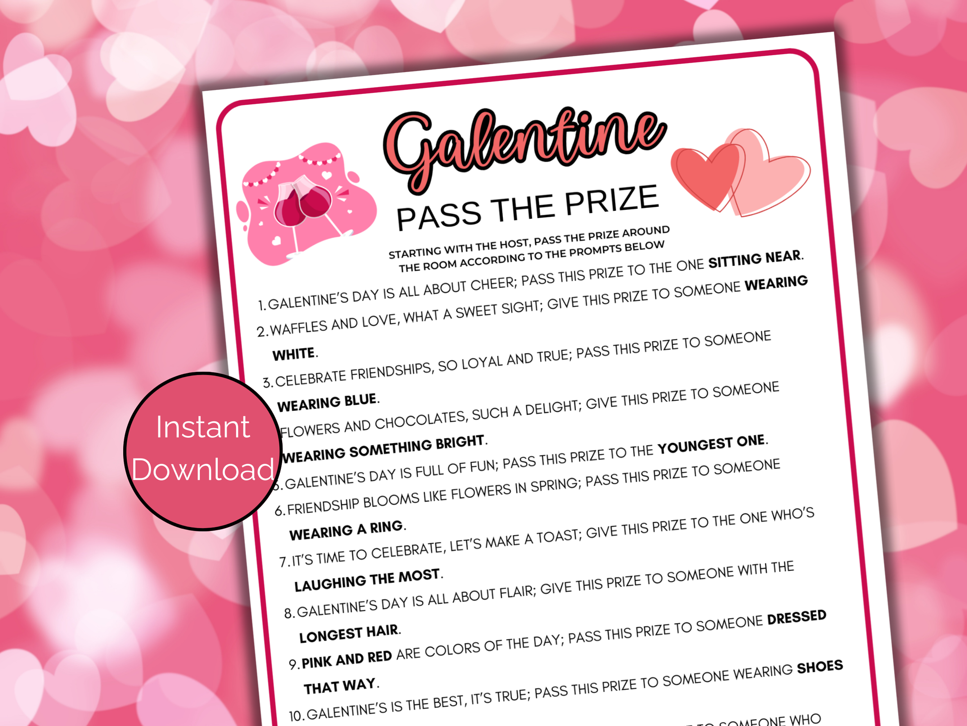Galentine's Day Pass the Prize - Print on 8.5 x 11 paper