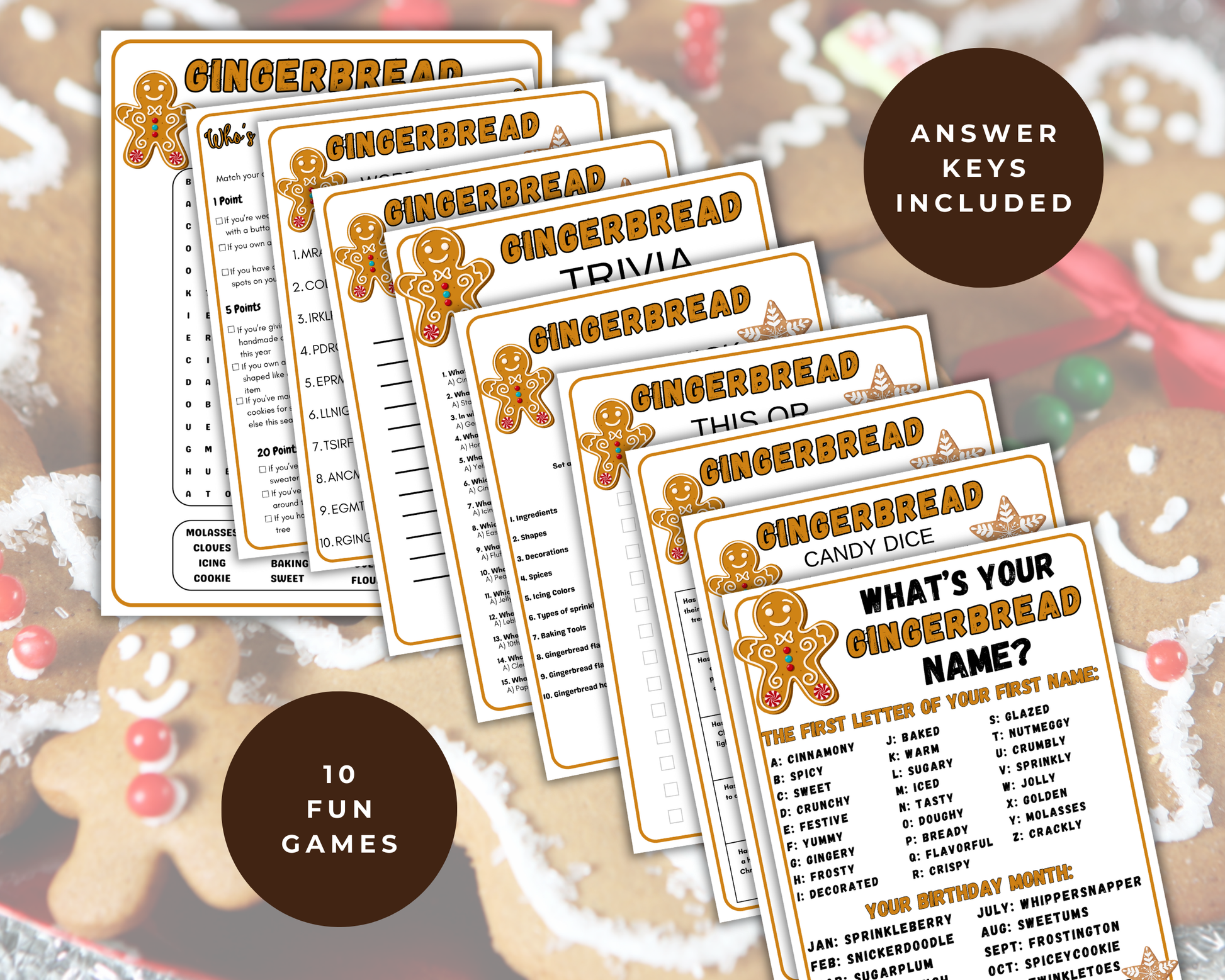 10 Gingerbread games + answer keys - 1 per 8.5x11 inch piece of paper