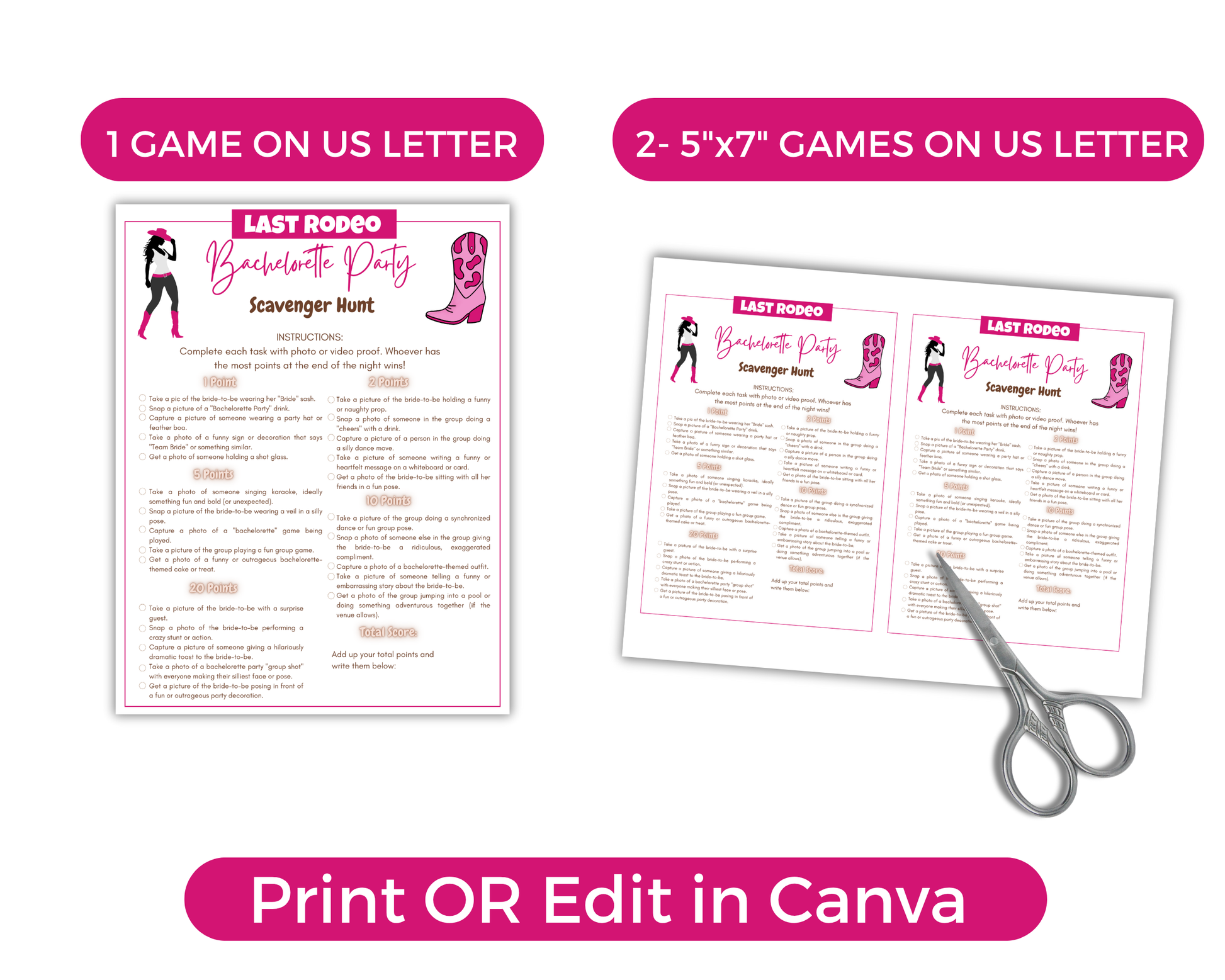 ➤ Last Rodeo Bachelorette Games - Print 2 5x7 on 8.5x11 Paper