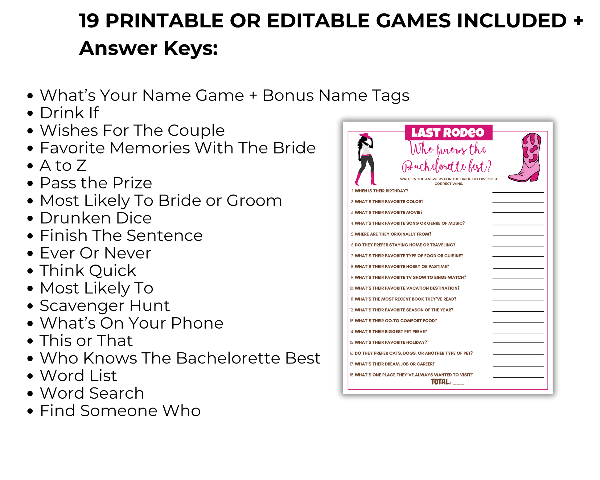➤ Last Rodeo Bachelorette Games - Editable in Canva template link