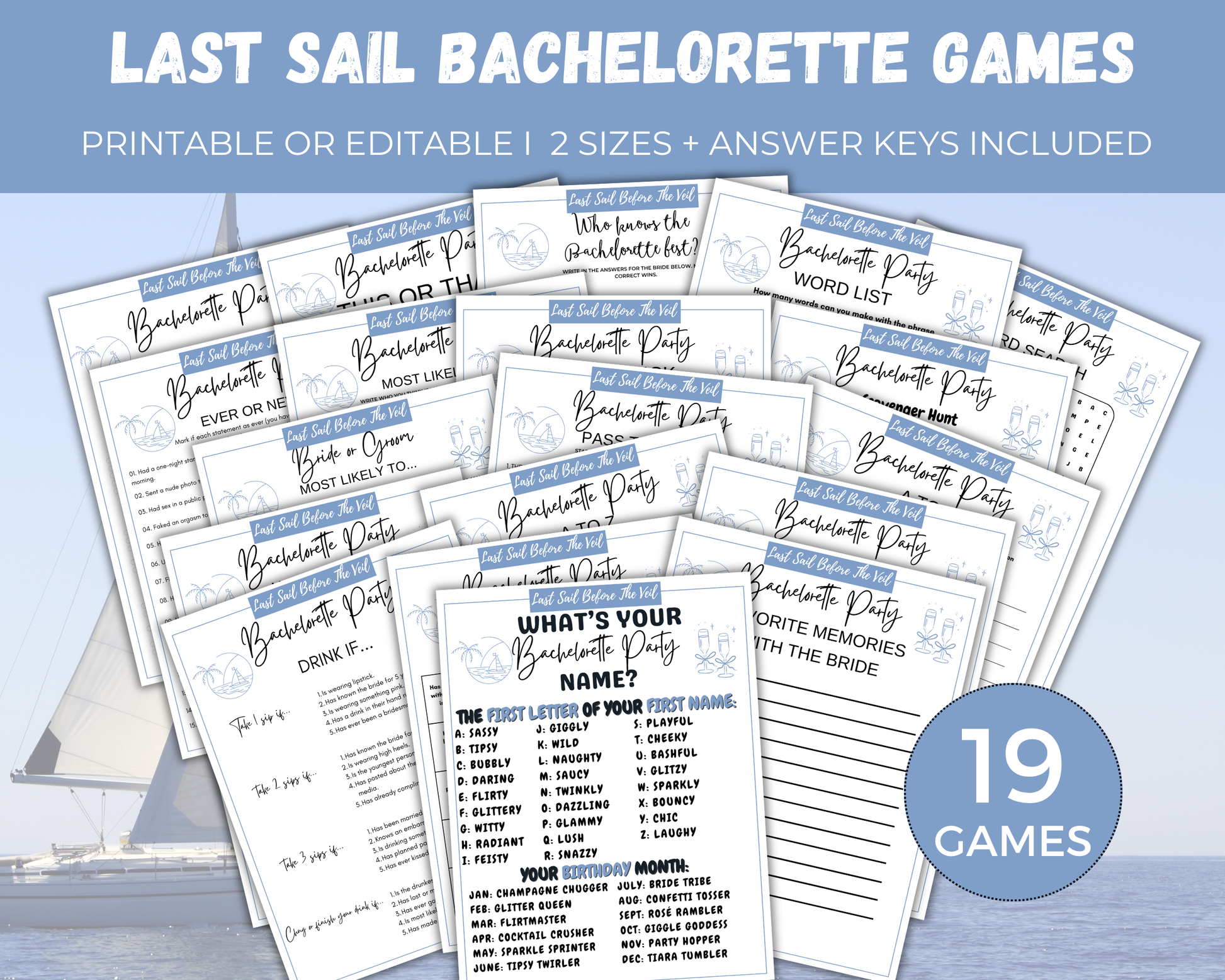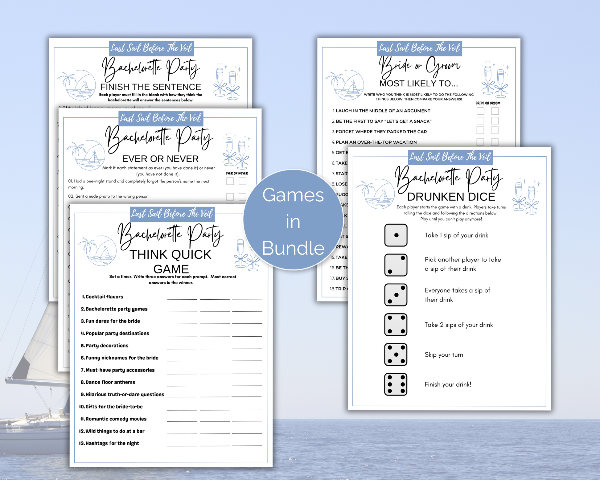 ➤ Last Sail Before the Veil Bachelorette Games - Print on 8.5x11 Paper
