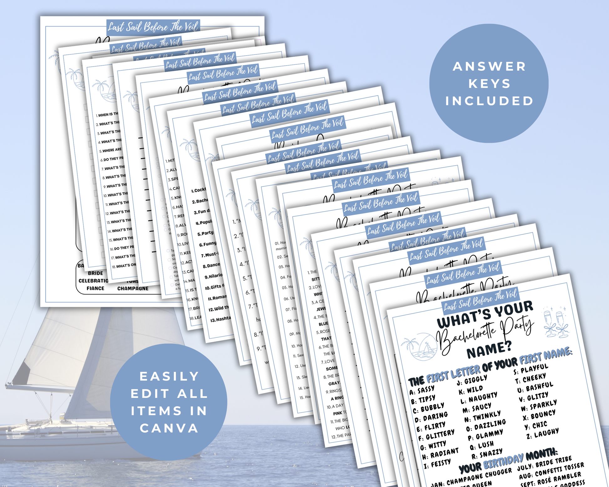 ➤ Last Sail Before the Veil Bachelorette Games - Editable in Canva template link