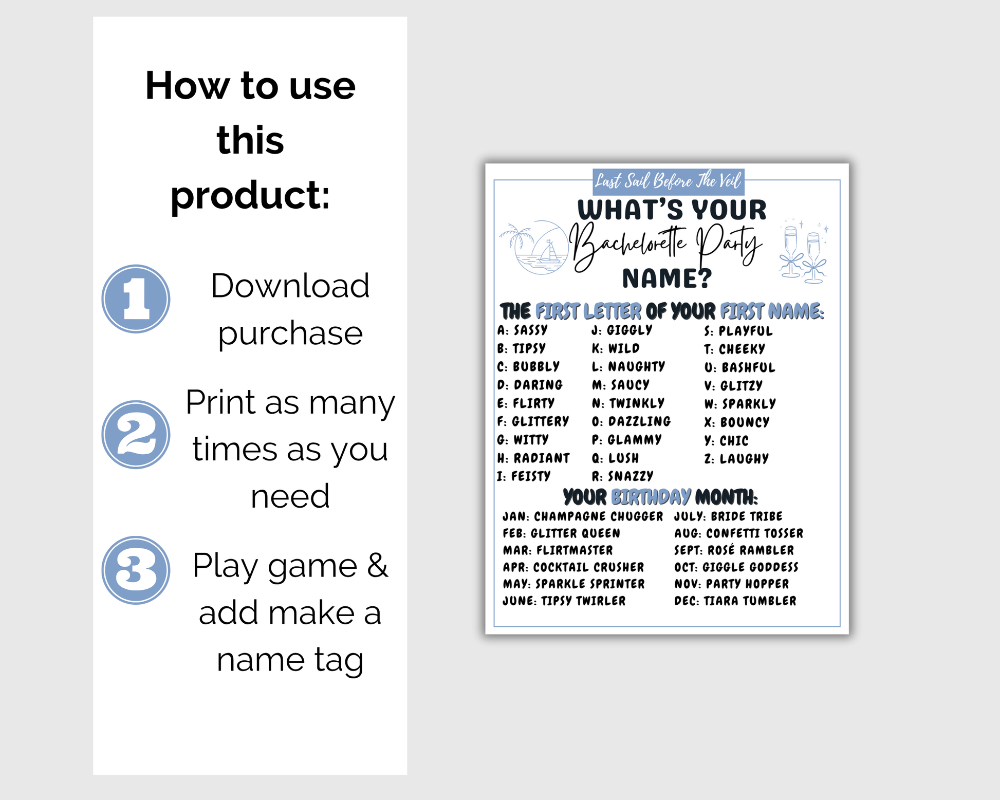 ➤ Last Sail Before the Veil Bachelorette Games - Print 2 5x7 on 8.5x11 Paper