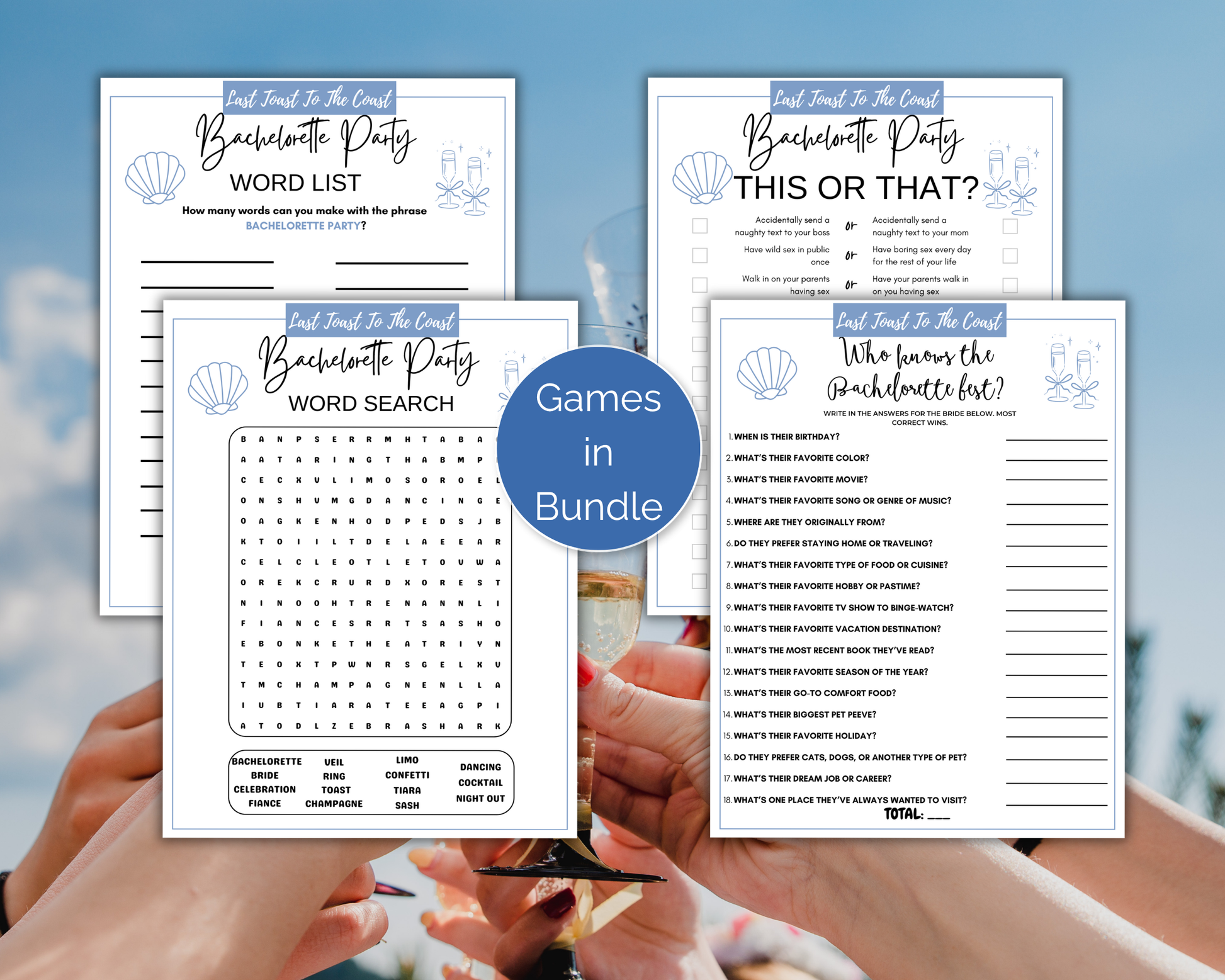 ➤ Last Toast to the Coast Bachelorette Games - Print on 8.5x11 Paper
