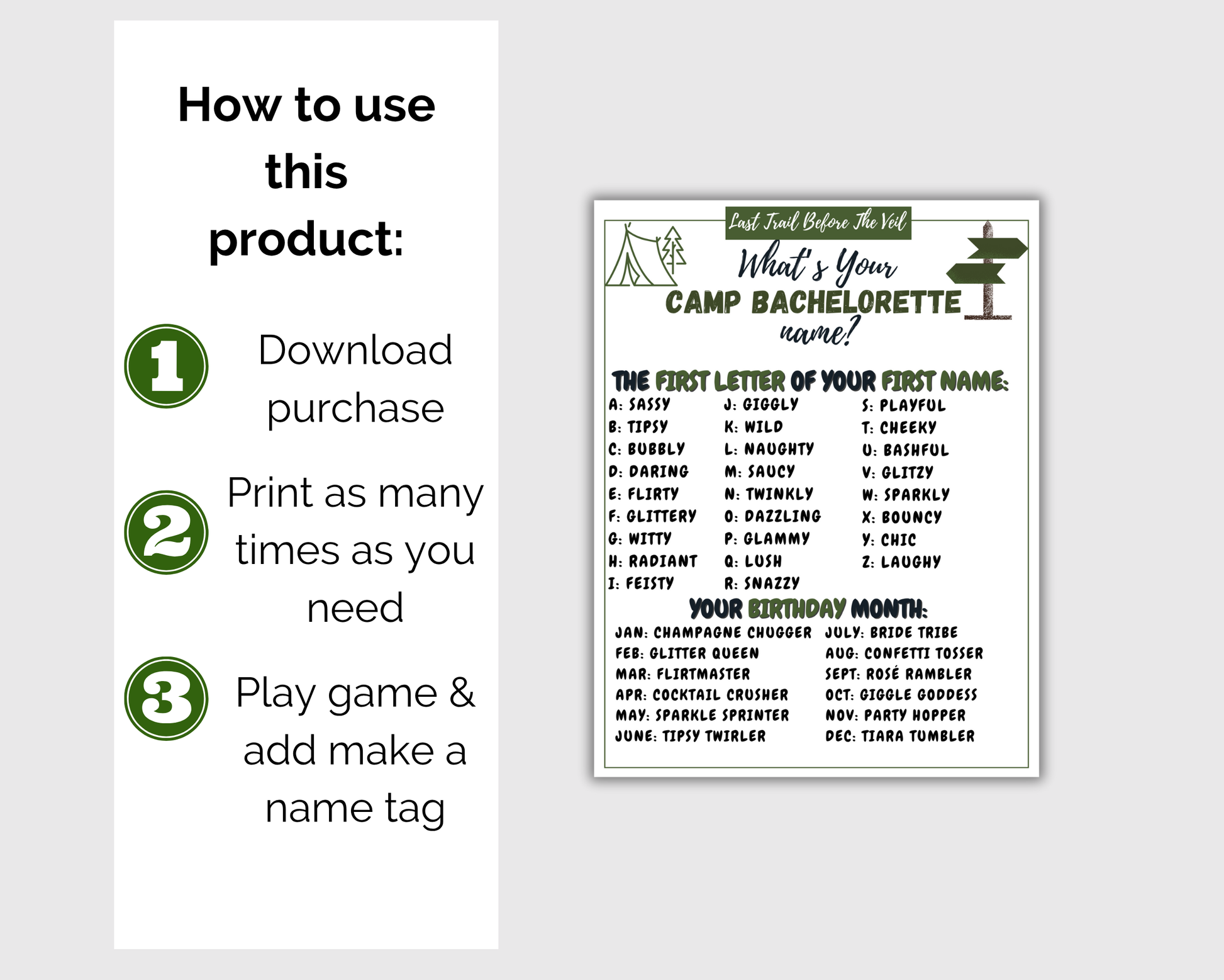 ➤ Camp Bachelorette Games - Print 2 5x7 on 8.5x11 Paper