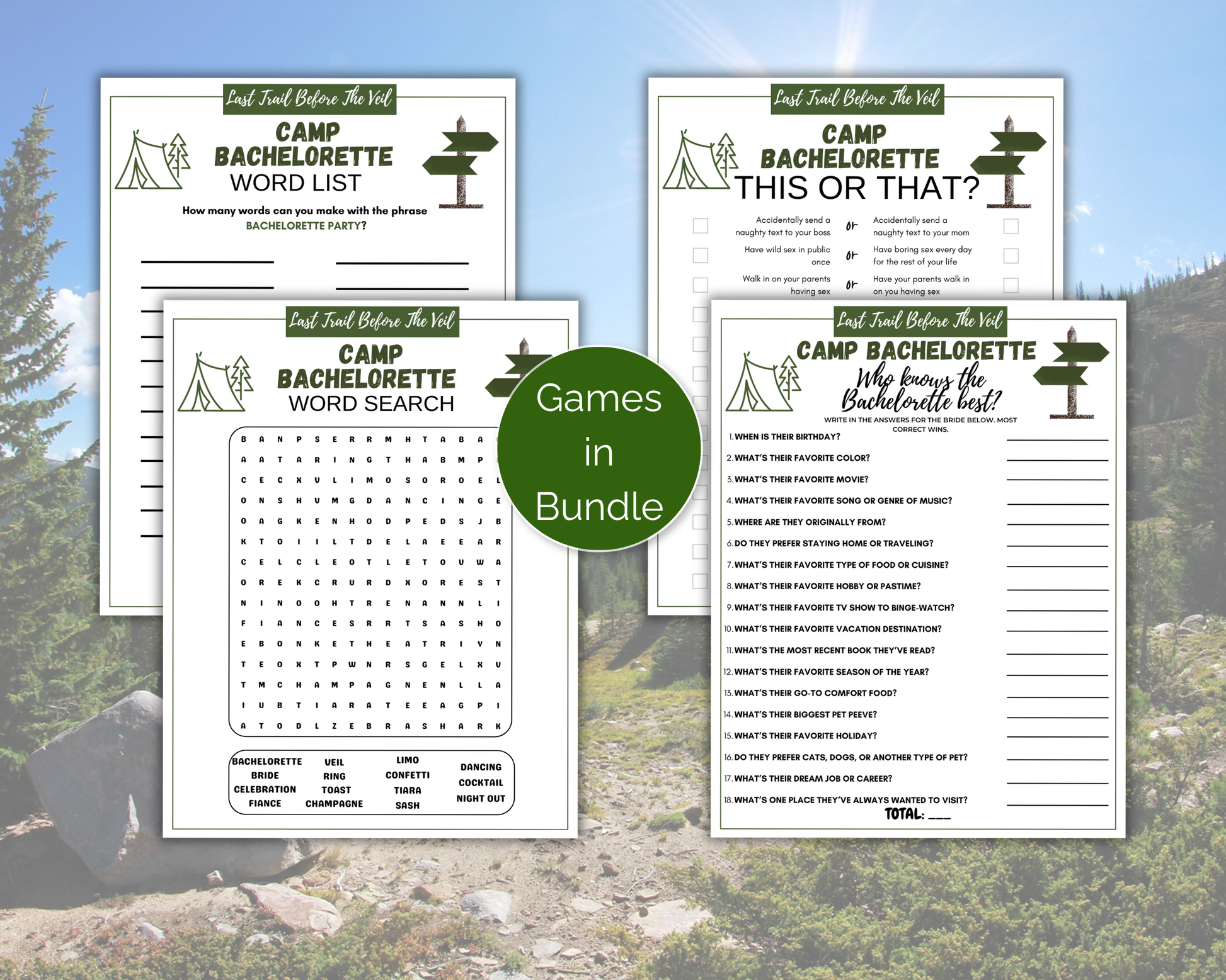 Last Trail Before The Veil Camp Bachelorette Game Bundle