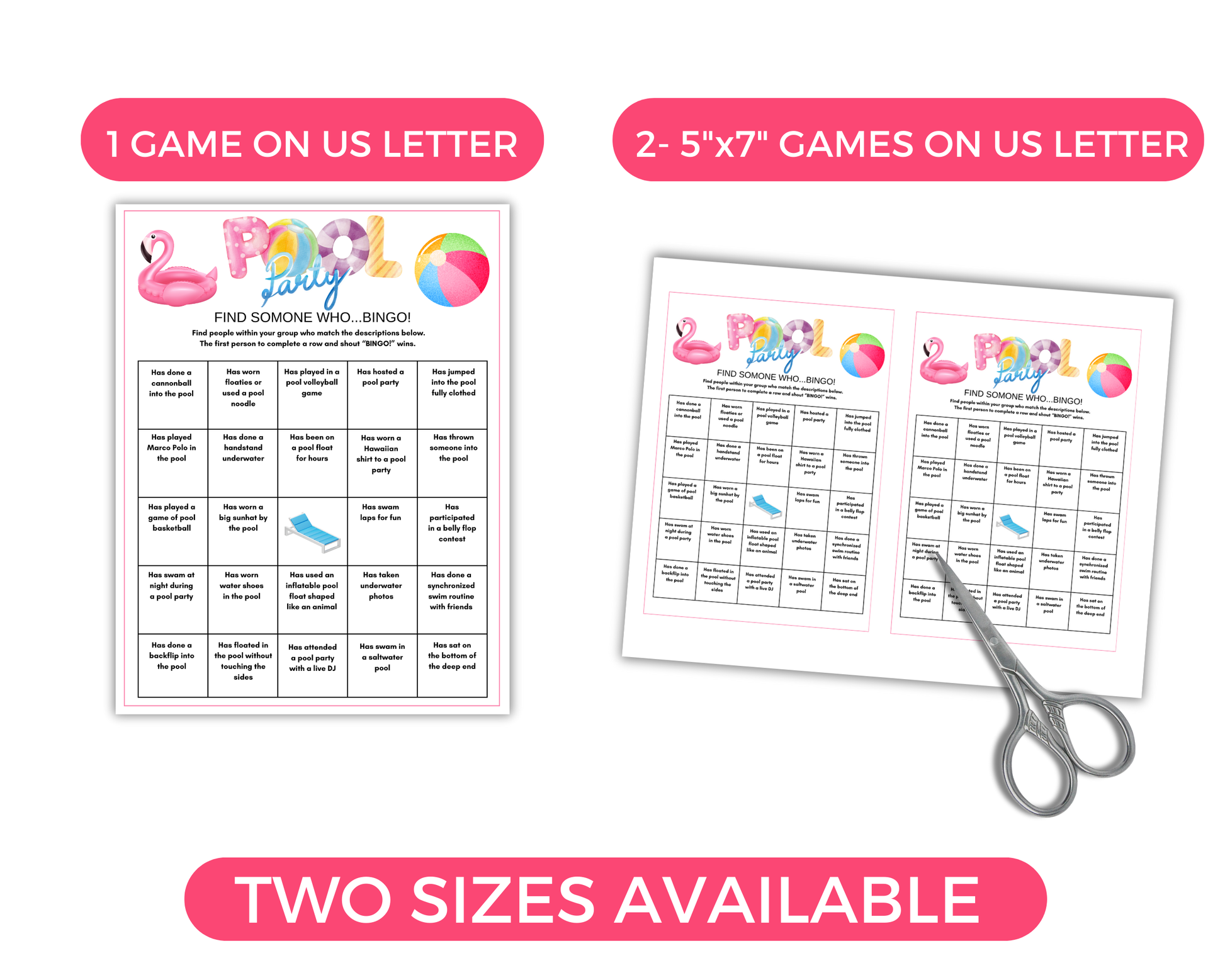 This fun pool party game bundle is a great pool party themed activity for adults and kids to play as an icebreaker at Pool parties, birthdays, summer parties and more. It comes with 5 games. Simply print the games as many times as you like and start playing.