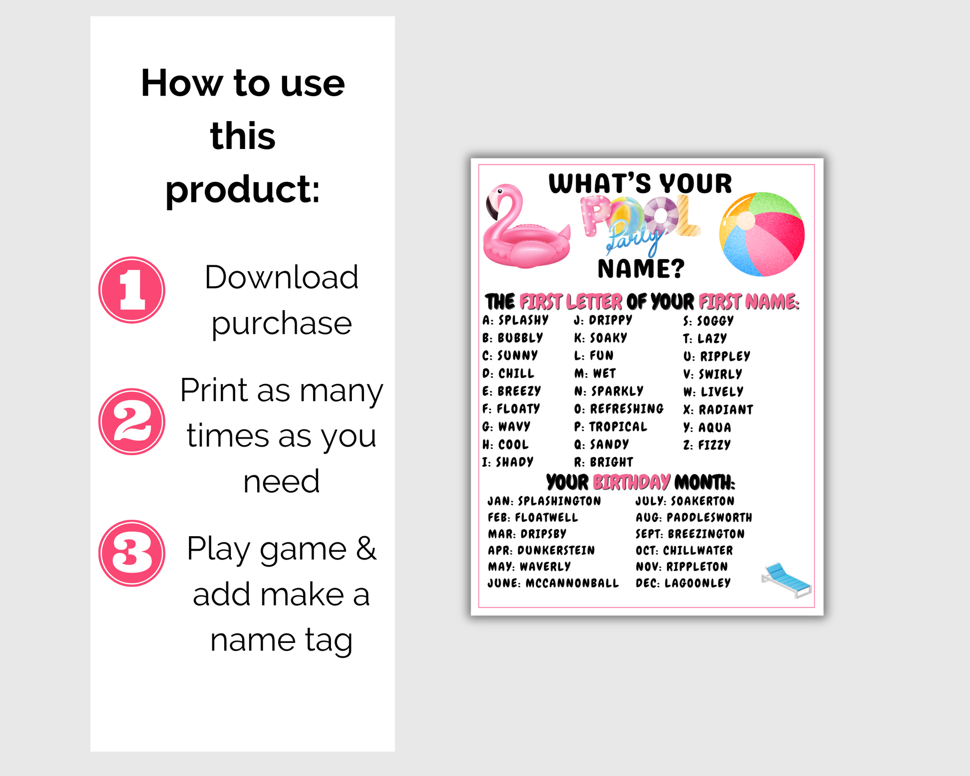 ➤ Whats Your Pool Party Name + Bonus Name Tags