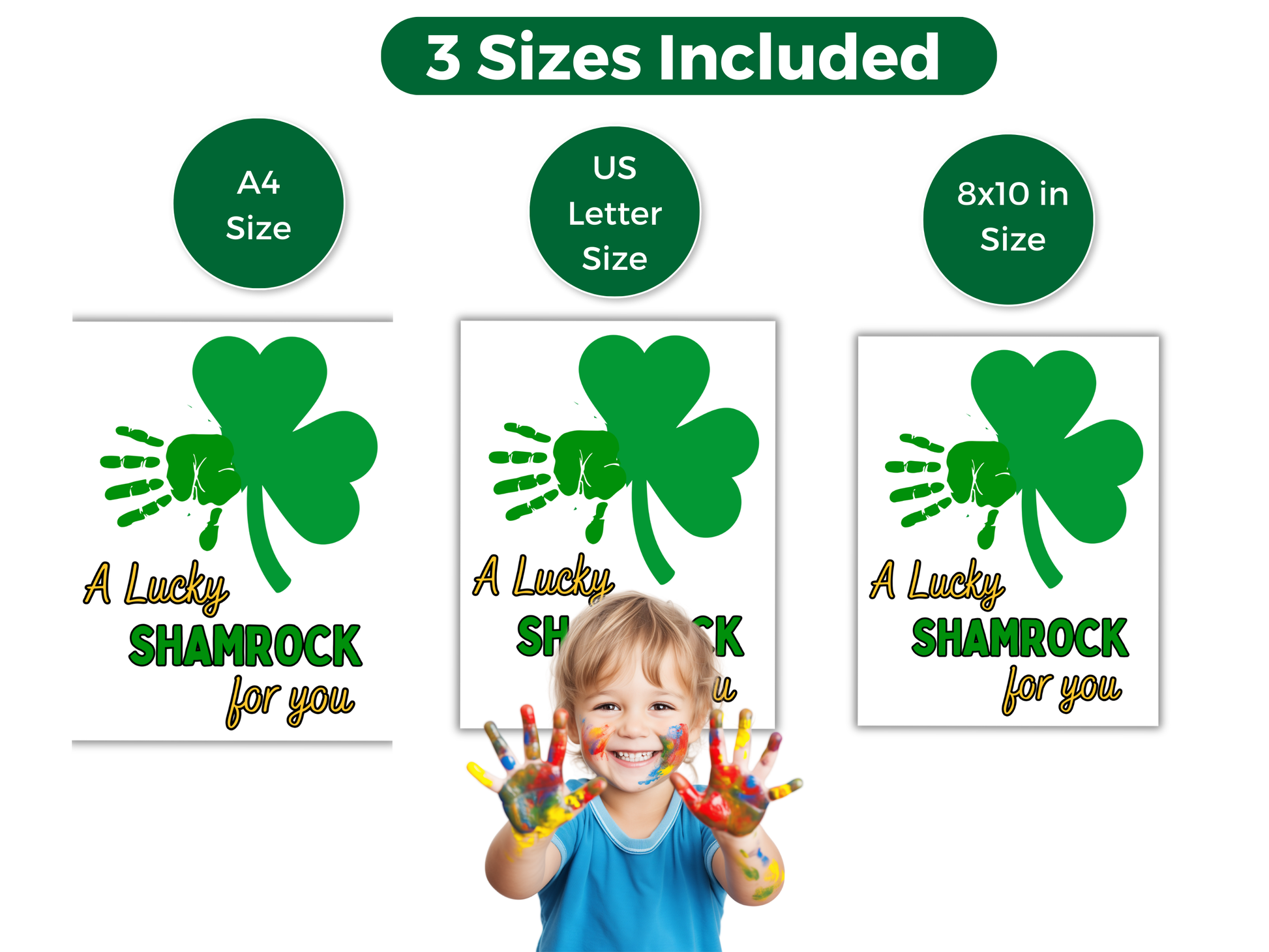 Shamrock St Patrick Handprint Art Designs - print on 8x10 paper