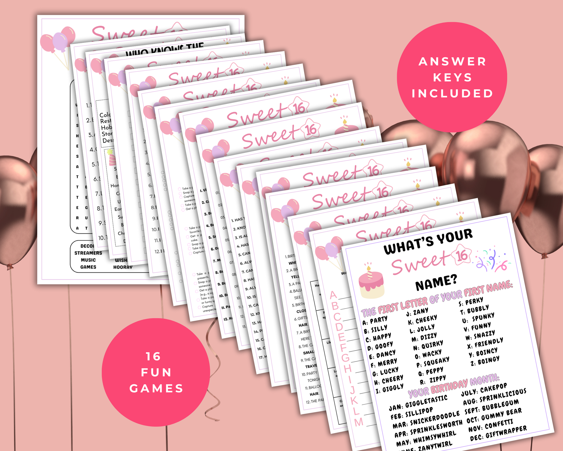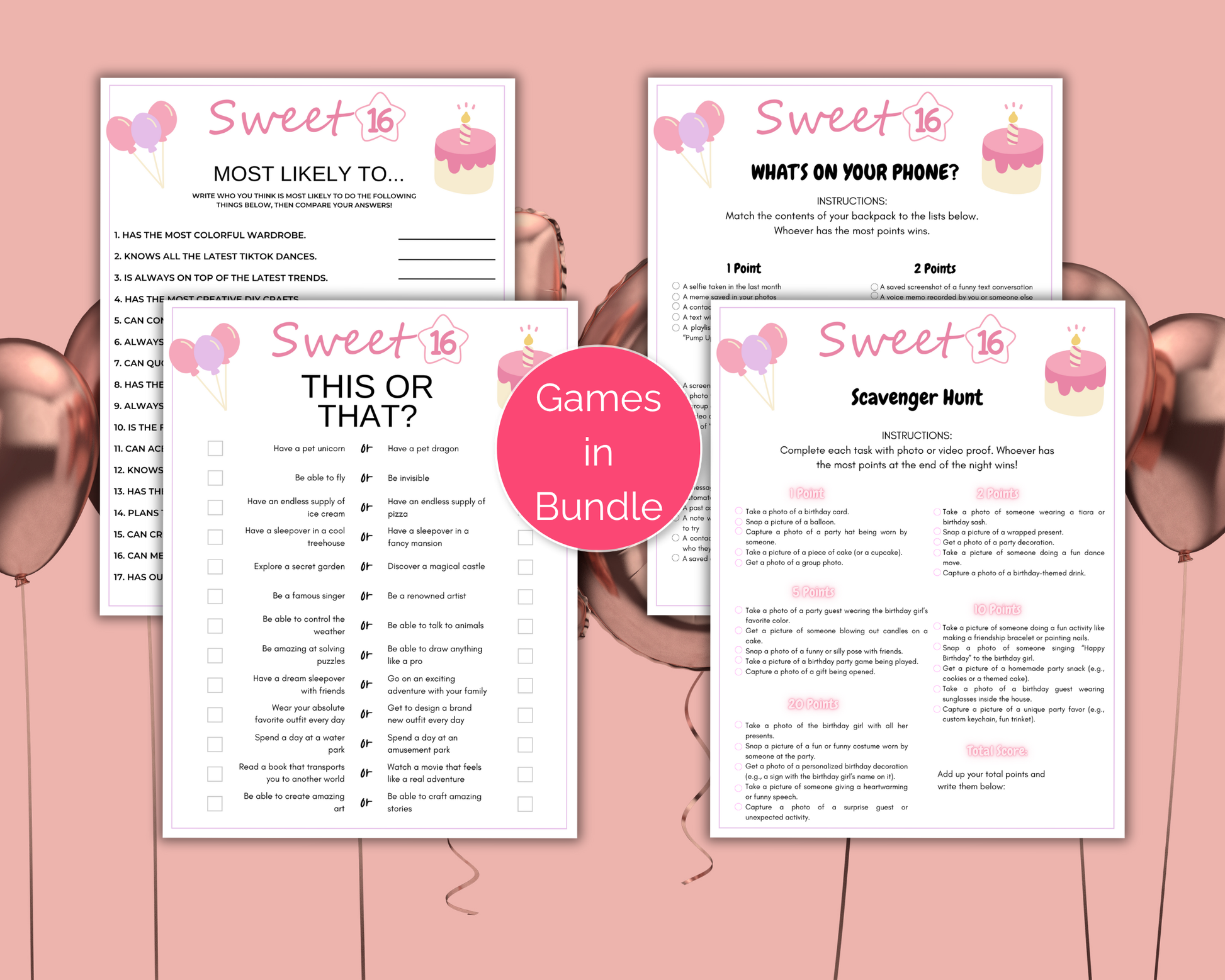 Sweet 16 Birthday Game Bundle