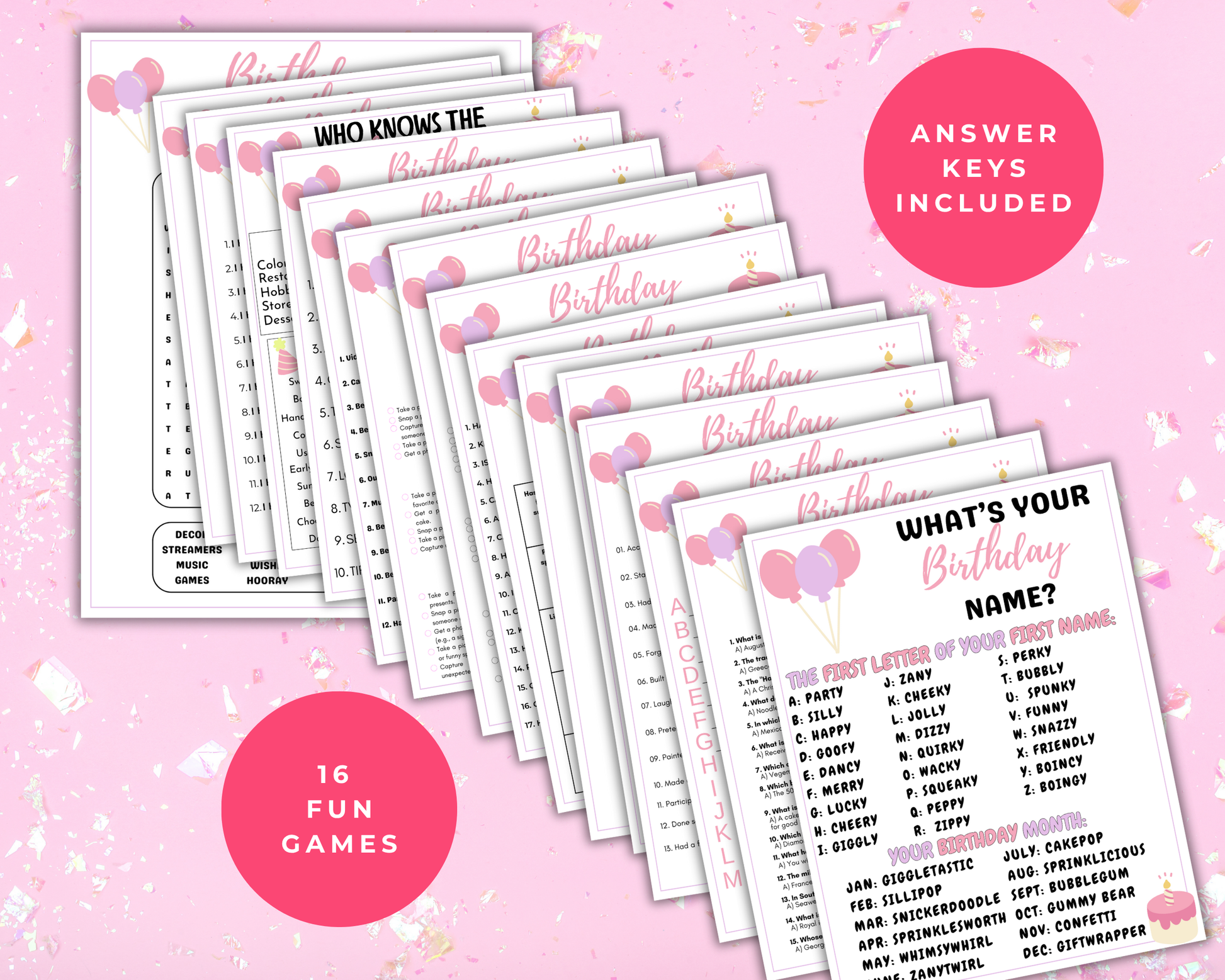 This fun Teen Birthday Party Game bundle is a great birthday themed activity to play at birthday parties and more. It comes with 16 games. Simply print the games as many times as you like and start playing.