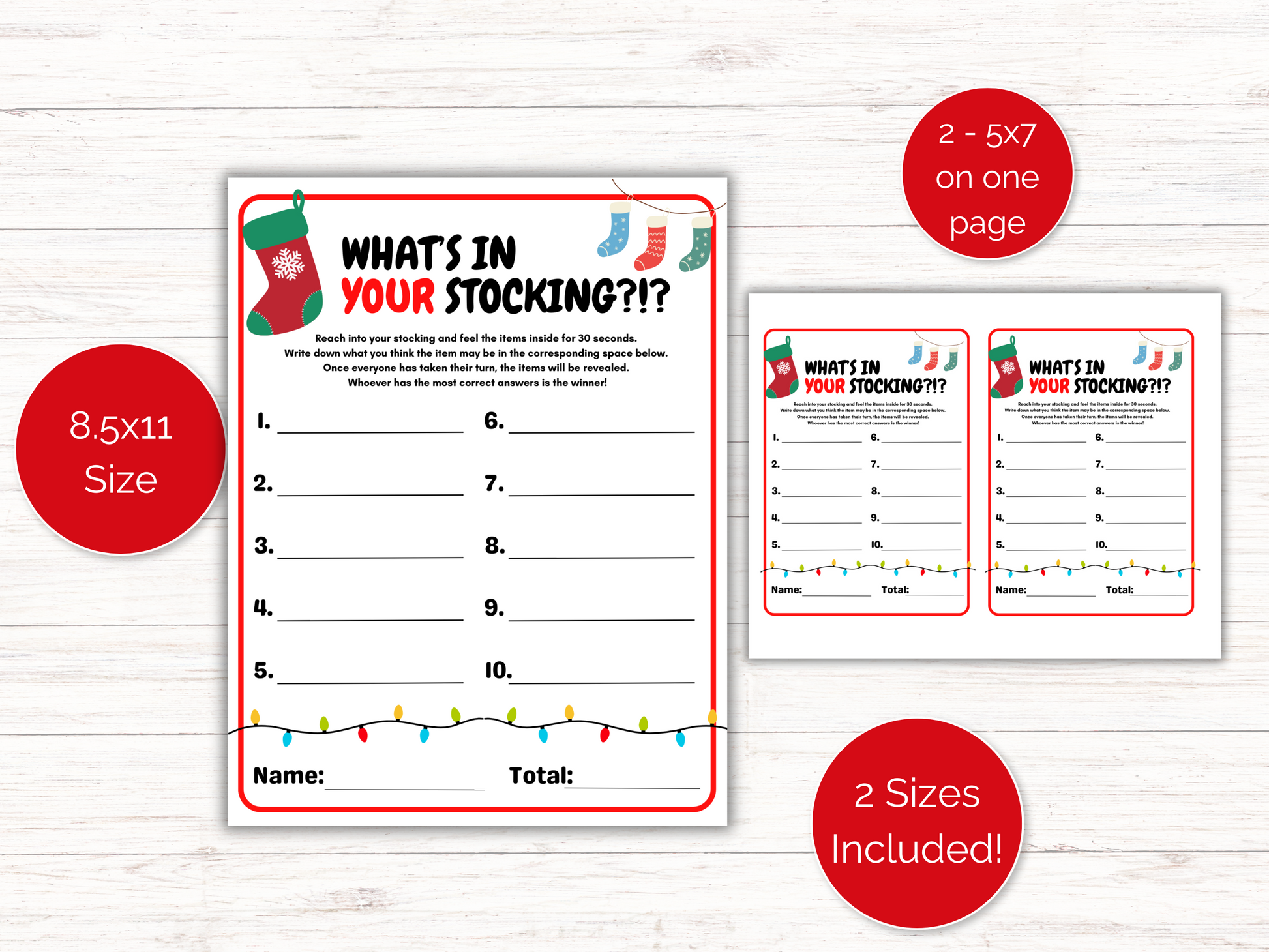 What's in The Stocking 5x7 - Print 2 games on one 8.5 x 11 sheet of paper