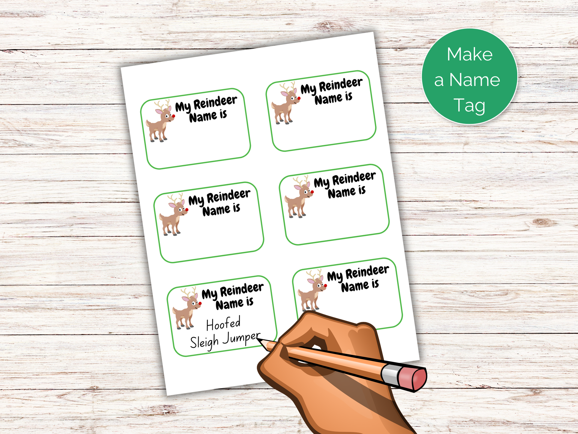 Reindeer Name Tags - Print on sticker paper, write your name, and cut the name tags out.